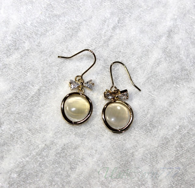 ラウンドストーンのフックピアス猫目石キャッツアイ [UNIA23001390]
