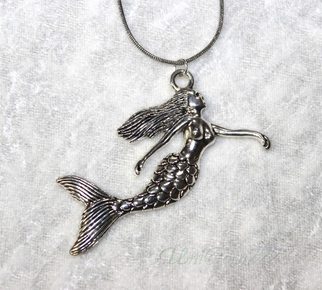 お店のTOPページはこちらです(↓) https://unicorn777.thebase.in/ 人魚=マーメイドをモチーフにしたネックレスです。チェーンの長さは、45cmです。 <人魚について> 人魚の容姿については誰でも知っているので割愛しますが、人魚と言っても、男性もいて、男の人魚をマーマン(Merman)女の人魚をマーメイド(Mermeid)と呼びます。「マー」というのはラテン語で「海」という意味で、「メイド」は、日本語のメイドさんと同じ意味です。 人魚伝説の起源は、諸説入り乱れてます。海の哺乳類である「ジュゴン」や魚類である「リュウグウノツカイ」を見間違えたのではないか、とか色々な説がありますが、その生物が生息していない、様々な地域にも、古来から人魚伝説が伝わっているので不思議なのです。 また、残念ながら、人魚は、昔から、船乗りや漁師の間ではあまり歓迎されなかったようです。15世紀から始まった「大航海時代」においても、船乗りの間では、人魚は海難を起こす不吉の象徴だとされていましたし、それ以前でも、天変地異を引き起こす魔物とされて忌避されてきたようです。 人魚以外に、水辺に生きる美しい女性的生物(もしくは妖精又は精霊)で有名なのは、「ローレライ(ドイツ)」「セイレーン(ギリシャ)」「ウンディーネ(ドイツ)」「メロウ(アイルランド)」「ハルフゥ(ノルウェー)」などがありますが、いずれも人間に幸福をもたらすというより、その逆のイメージです(ウンディーネはちょっと違うかも?) しかし、そんなイメージを一変させたのが、デンマークのハンス・クリスチャン・アンデルセン作の悲しい童話『人魚姫』(1837)です。この作品は、これ以降に創作された様々なエンターテイメントの元のお話になっています。その後に人魚をモチーフにした映画やドラマをいくつか挙げると、以下のようなものがあります。ご存じの作品もあるのではないでしょうか? 『リトル・マーメイド/人魚姫』(1989)(2017) 『マーメイド・イン・パリ』(2021) 『青い海の伝説』(2016-2017)(韓国) 『ブルー・マインド』(2018)(スイス) 『スプラッシュ』(1984) 『ジャスト・アド・ウォーター』(2006-2010) 『愛しのアクアマリン』(2006) 『人魚姫』(2016)(中国) ジョニーデップ主演の『パイレーツ・オブ・カリビアン/生命の泉』にも人魚が出てきますよね。 また、国内の話をしますと、人魚の肉を食べて800年を生き続けたとされる『八百比丘尼』(やおびくに)という尼さんがいます。この人は、伝説とはされていますが、北海道と九州南部を除く日本各地にその足跡が残されていて(全国28都県89区市町村121ヶ所にわたって伝承が分布)、実在したという説も有力です。この方は、本当に優しく、人々の幸せを祈って生きたとされているそうですよ。 カート