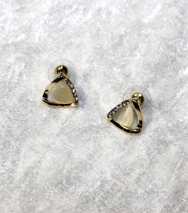 トライアングルフォルムのスタッドピアス 猫目石キャッツアイ [UNIA23001394]