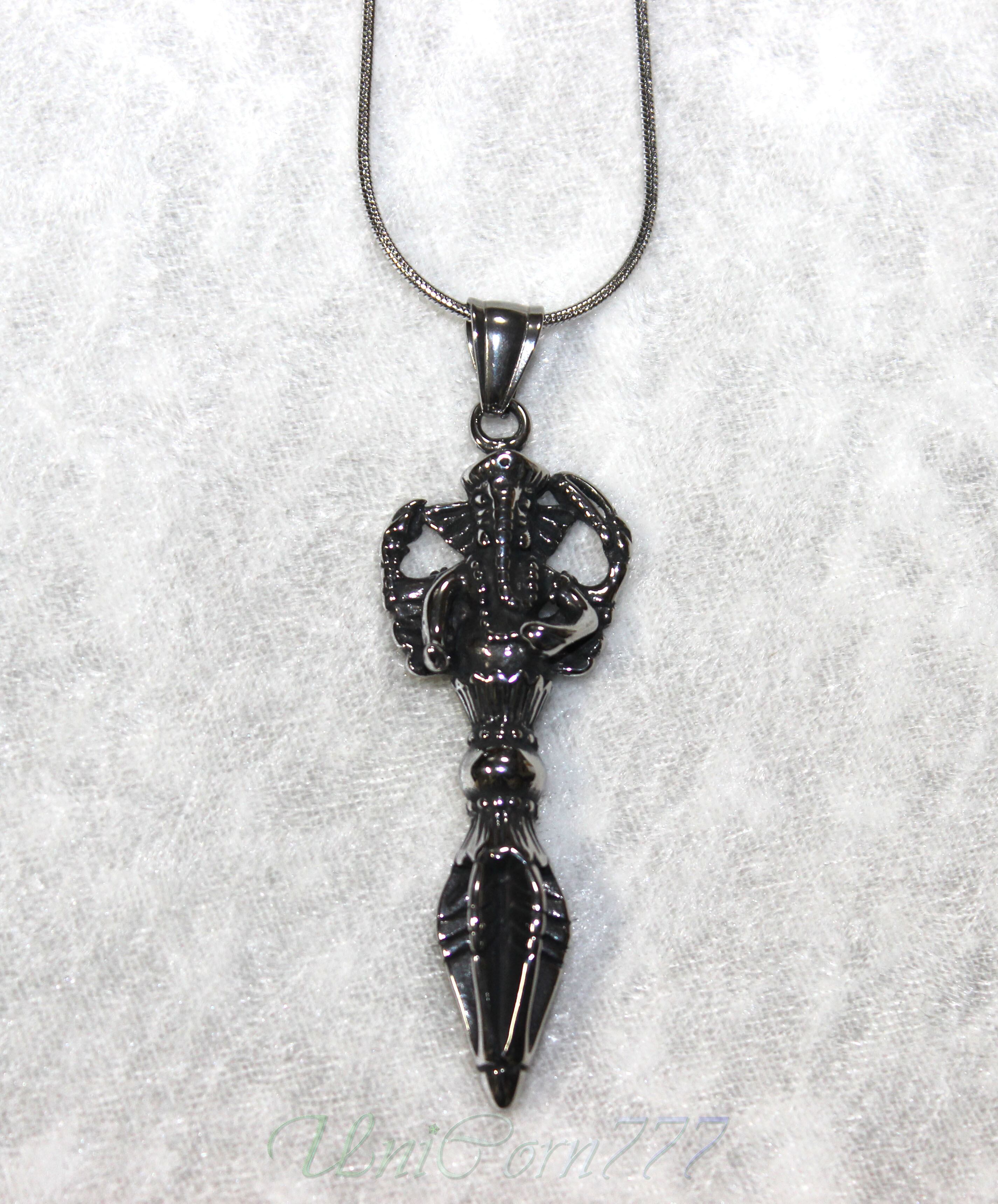 シヴァ神の息子、ガネーシャ神をモチーフにしたペンダントです。大きさは、縦60mm×横20mmです。チェーンは、スネイクタイプで60cmです。