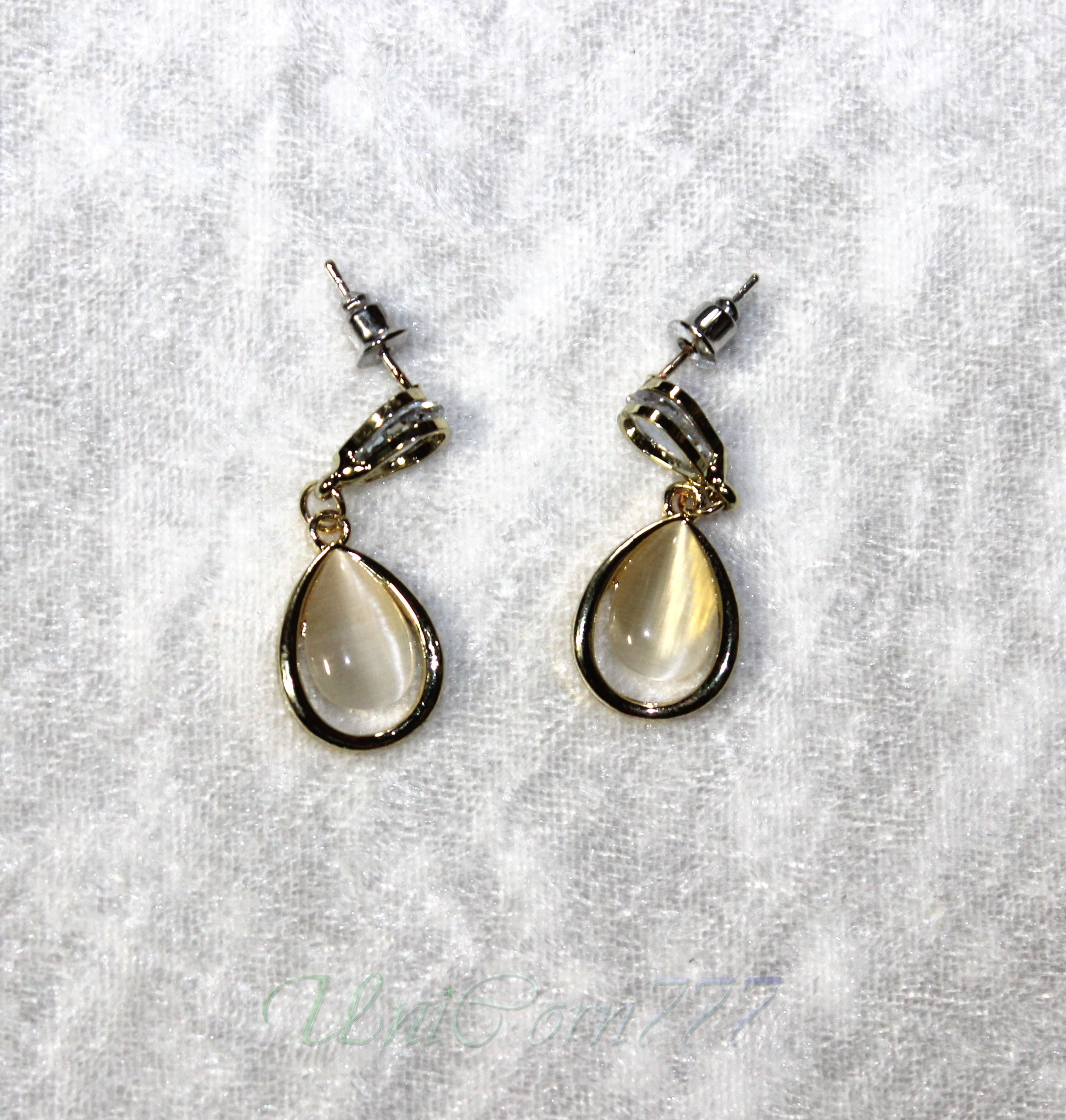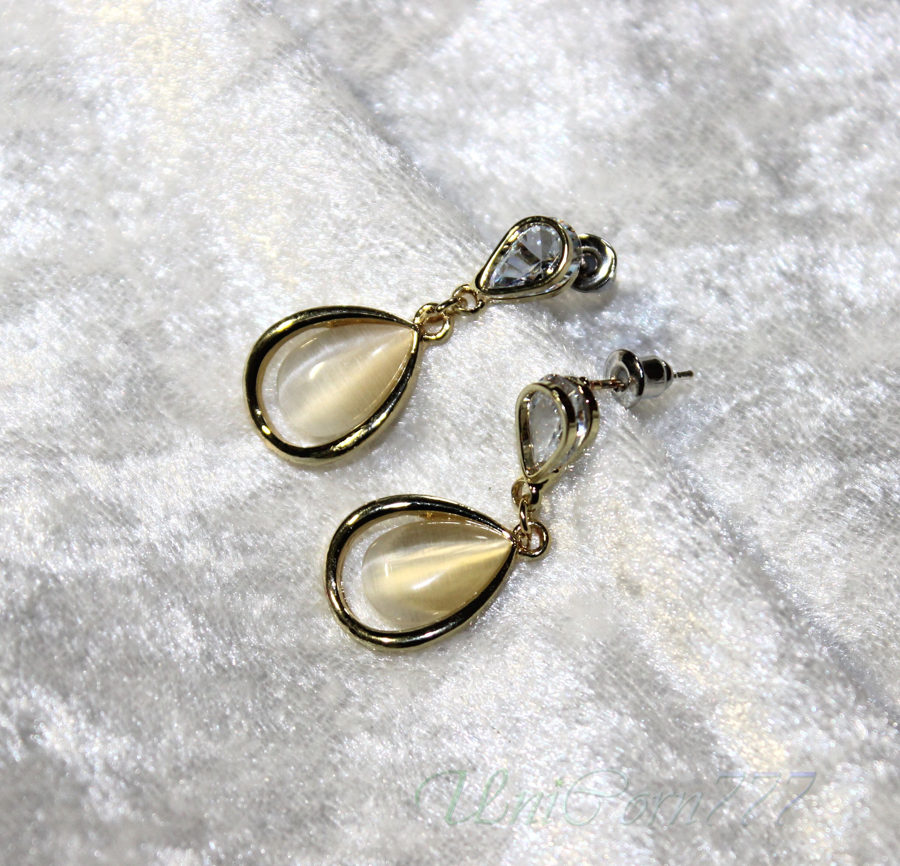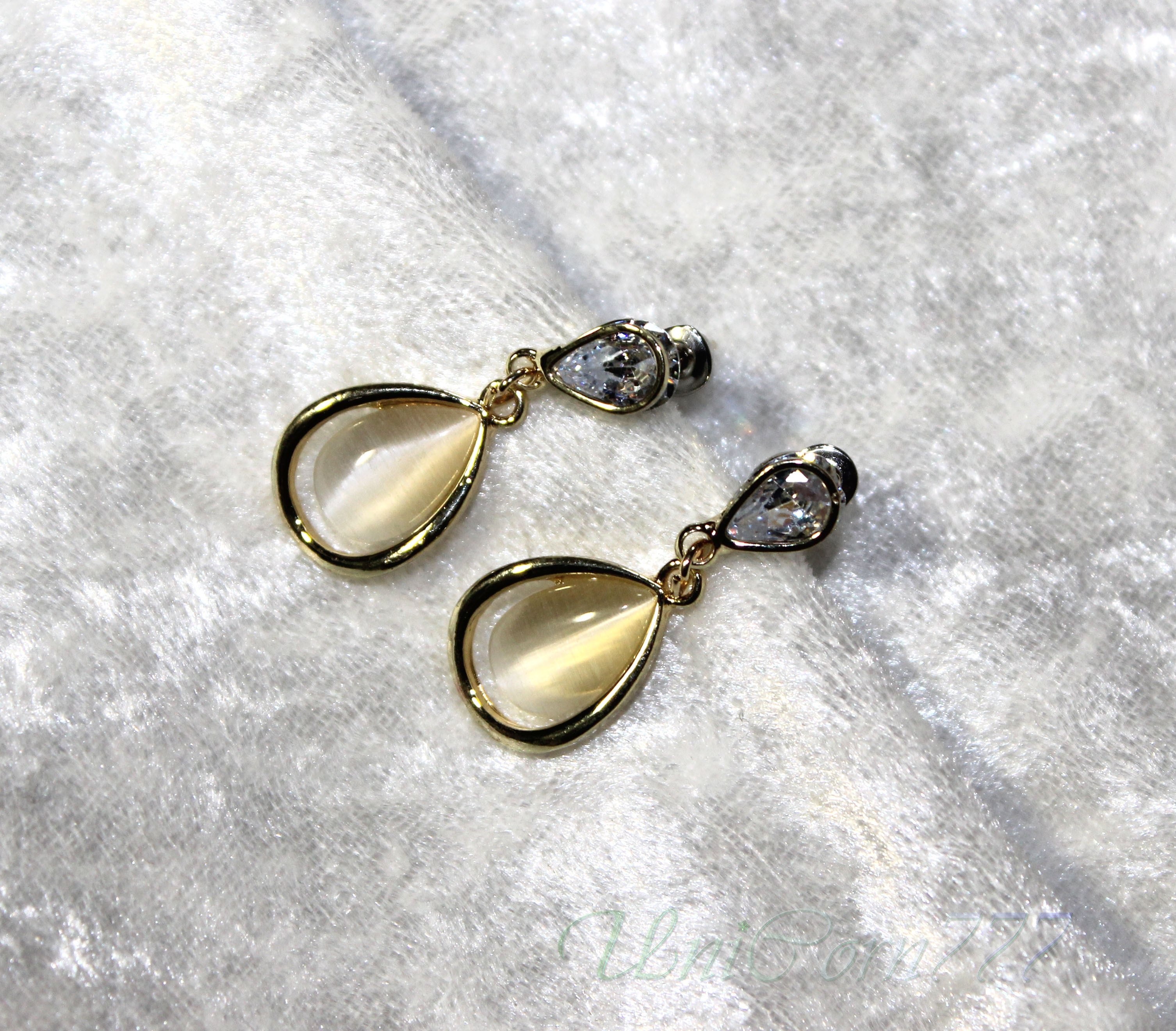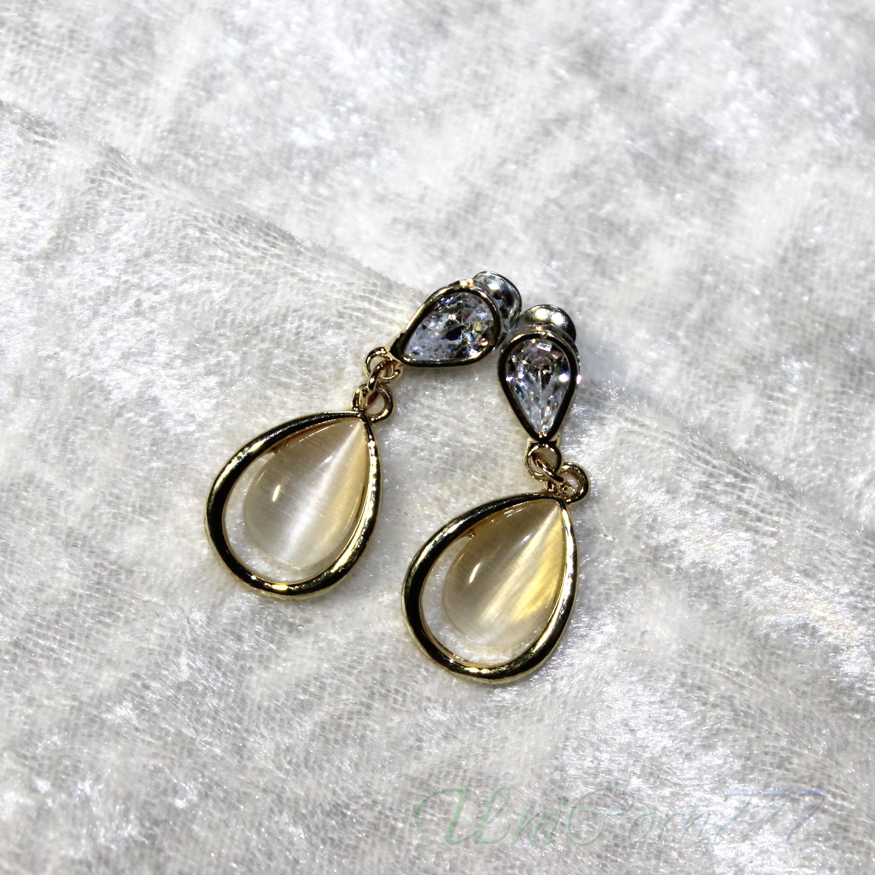 水滴フォルムのスタッドピアス 猫目石キャッツアイ [UNIA23001397]