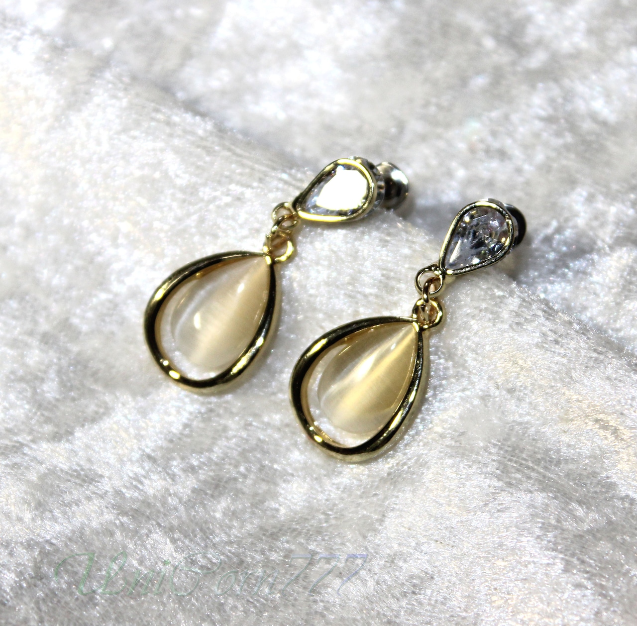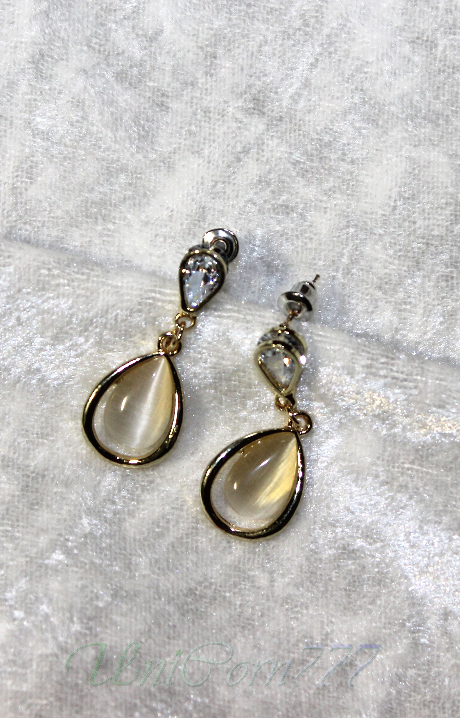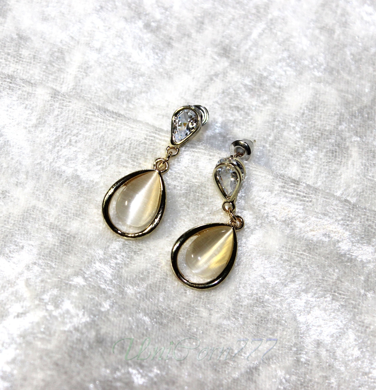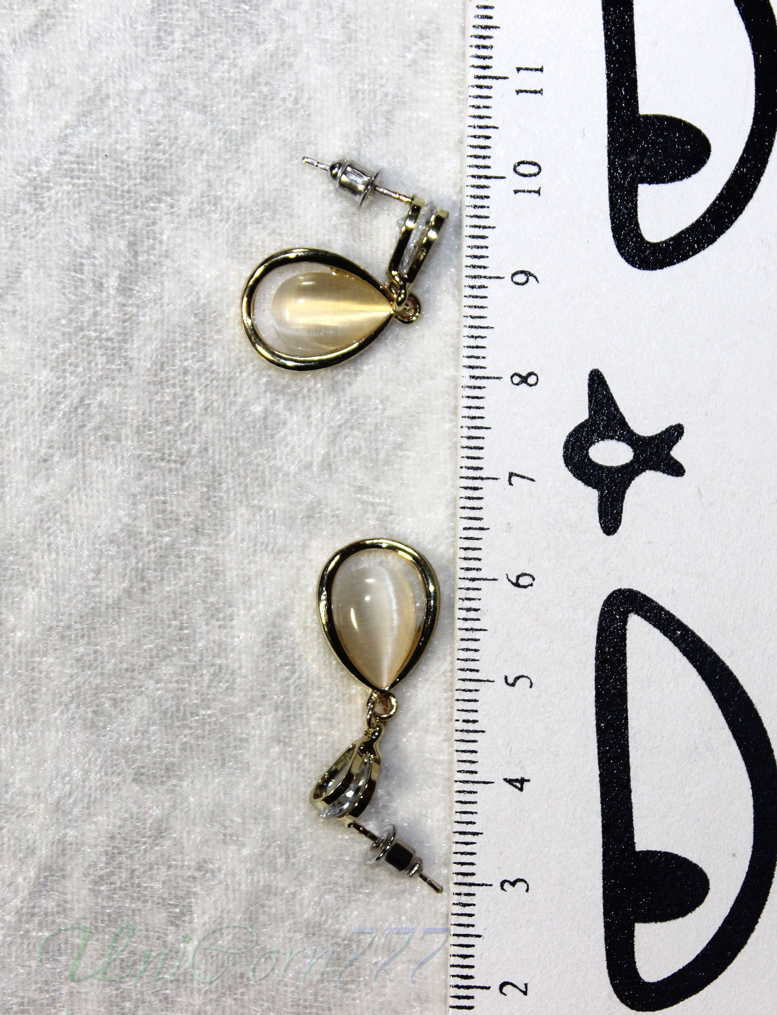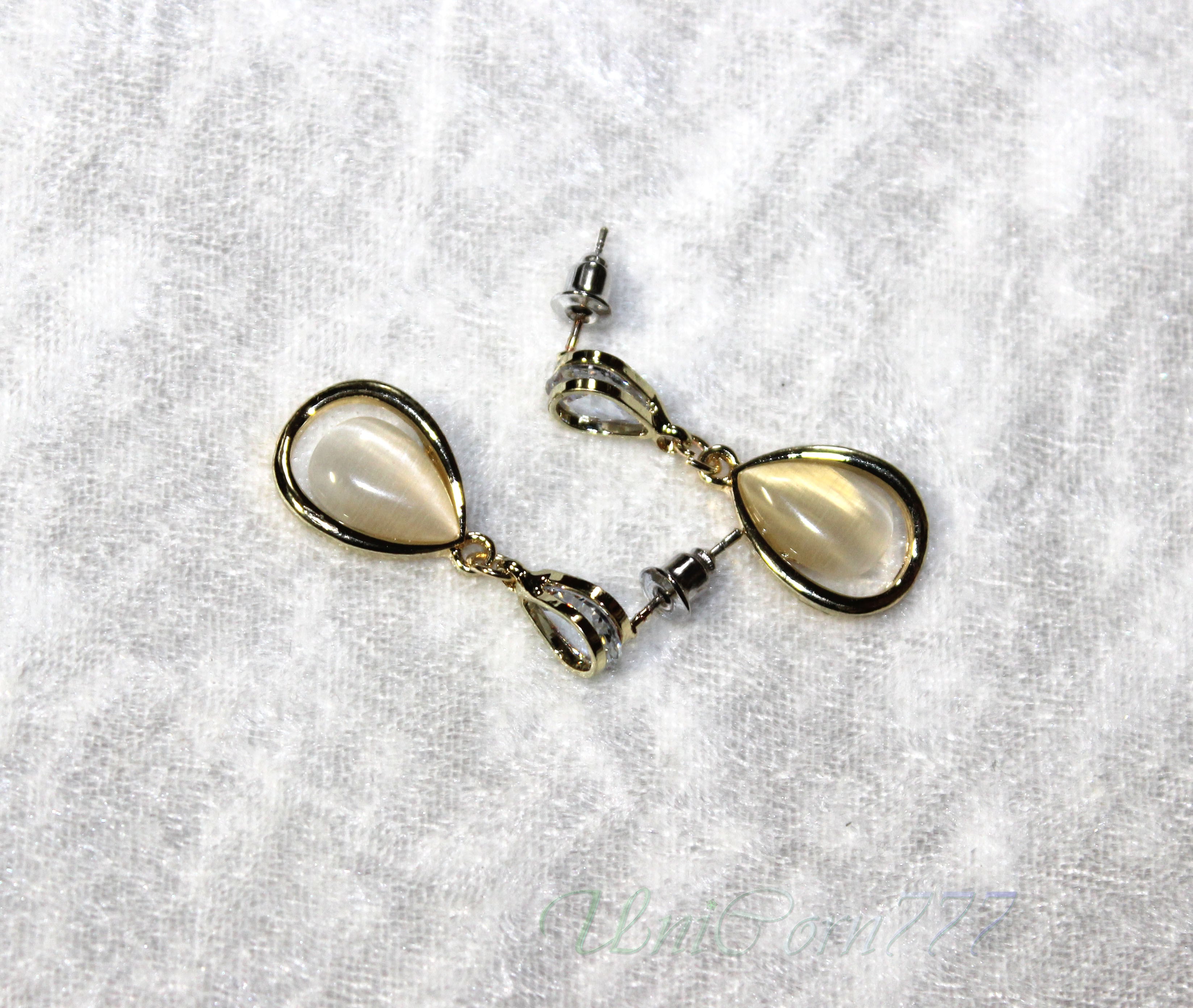 水滴フォルムのスタッドピアス 猫目石キャッツアイ [UNIA23001397]