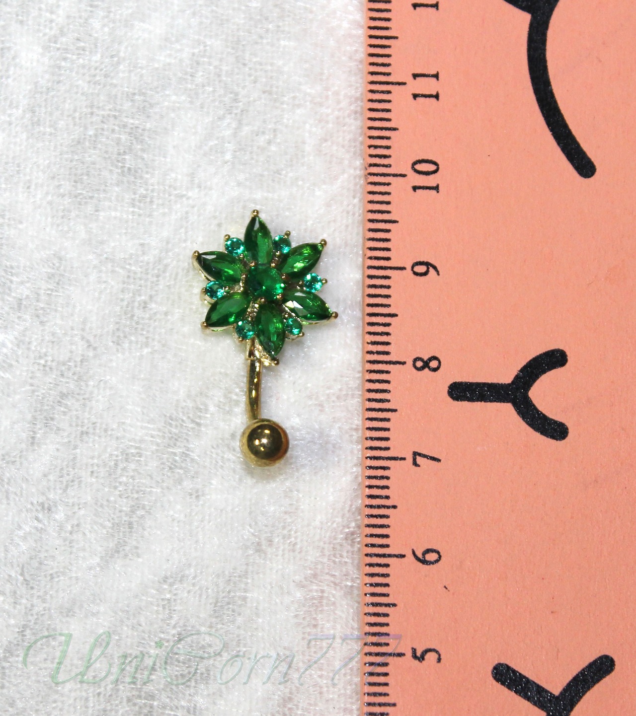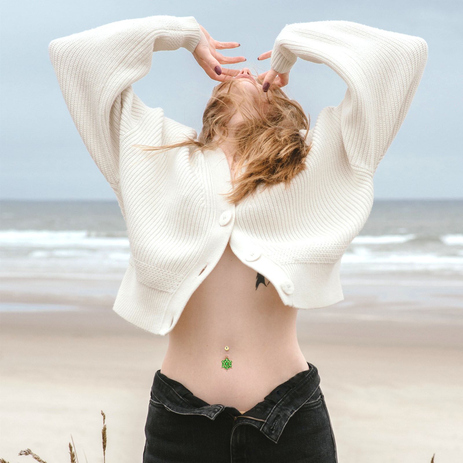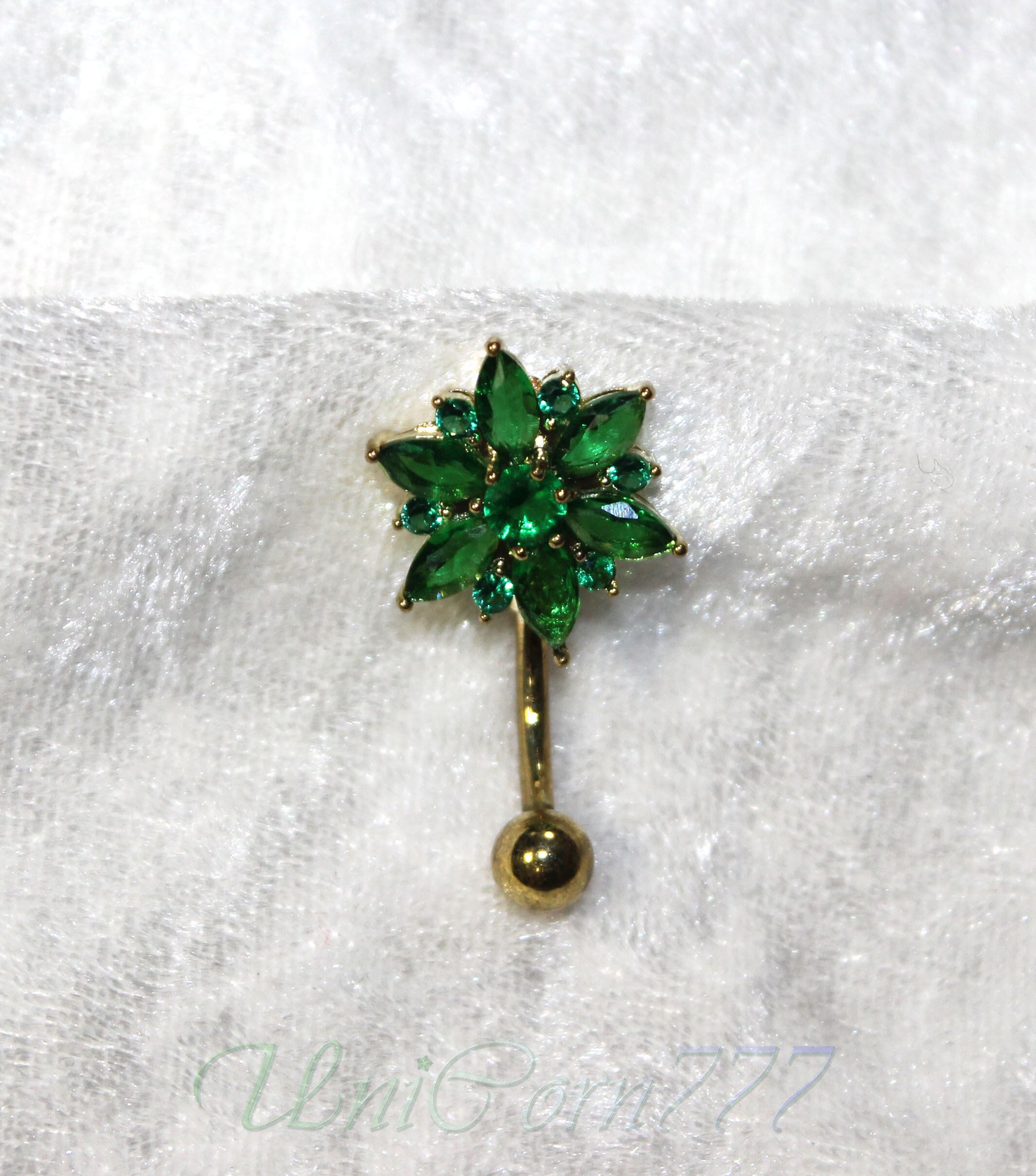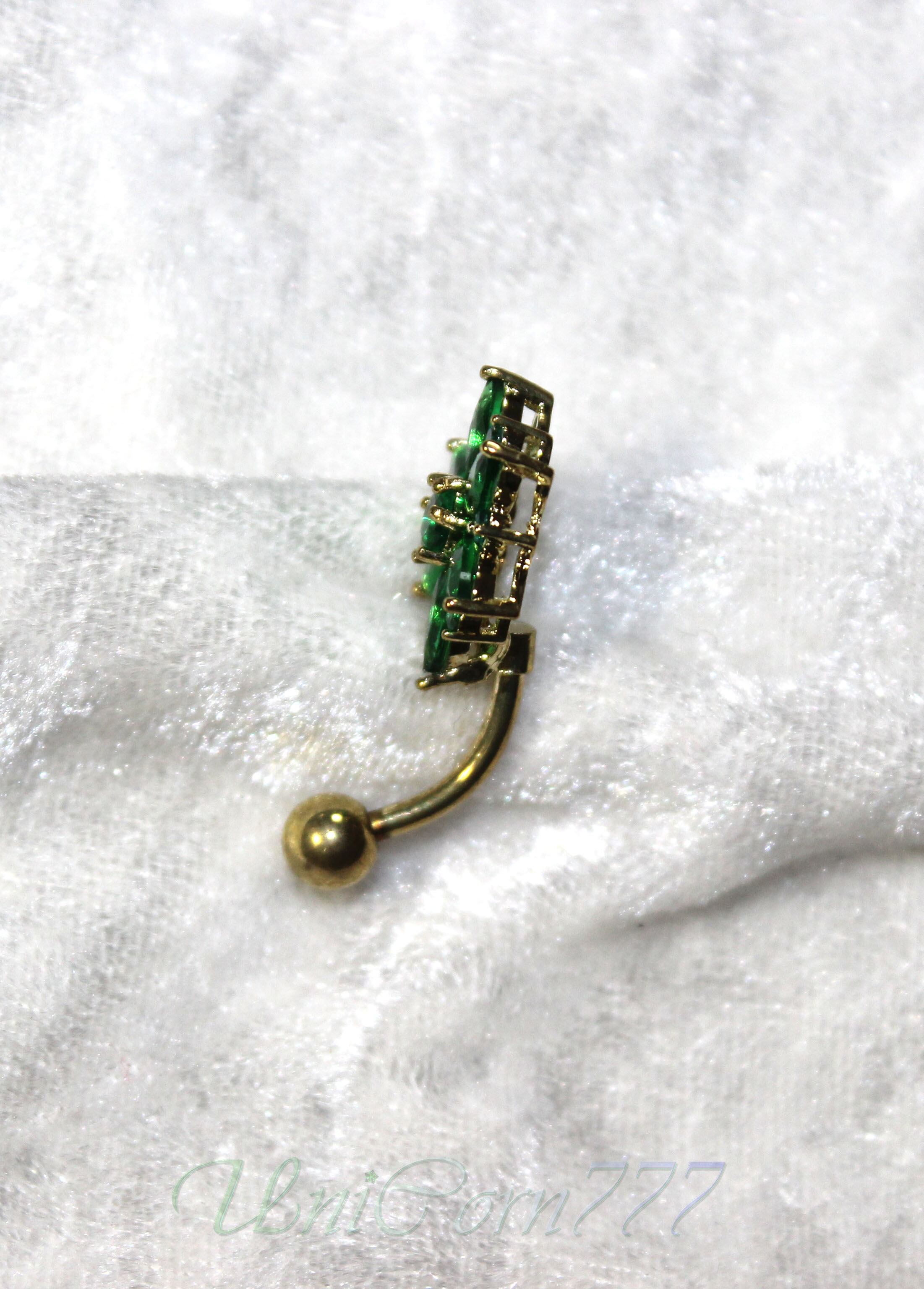 まるで深い森にいるかのようなフォレストグリーンの、おへそのピアスです。材質は、316L医療用ステンレス鉄鋼です。