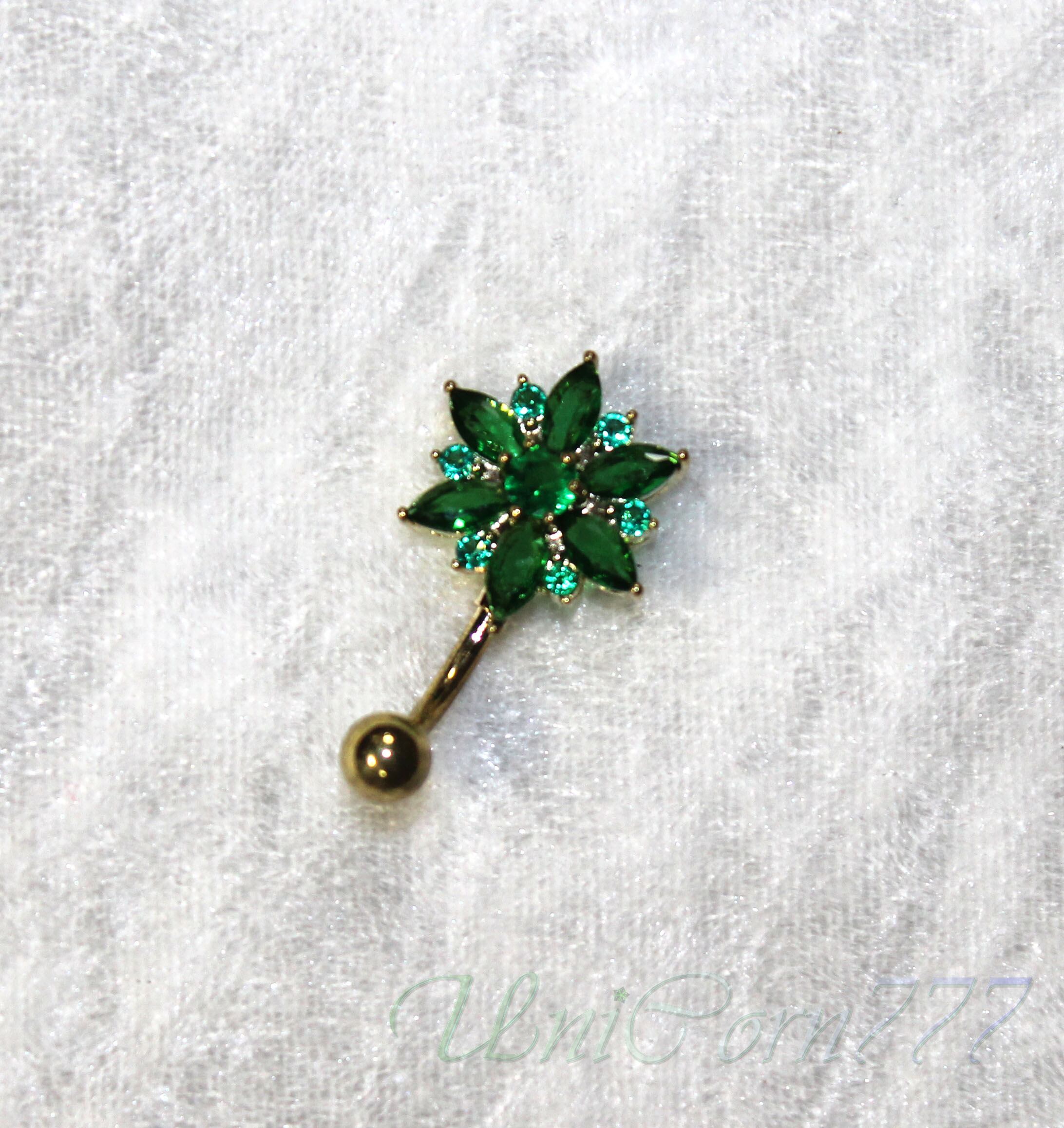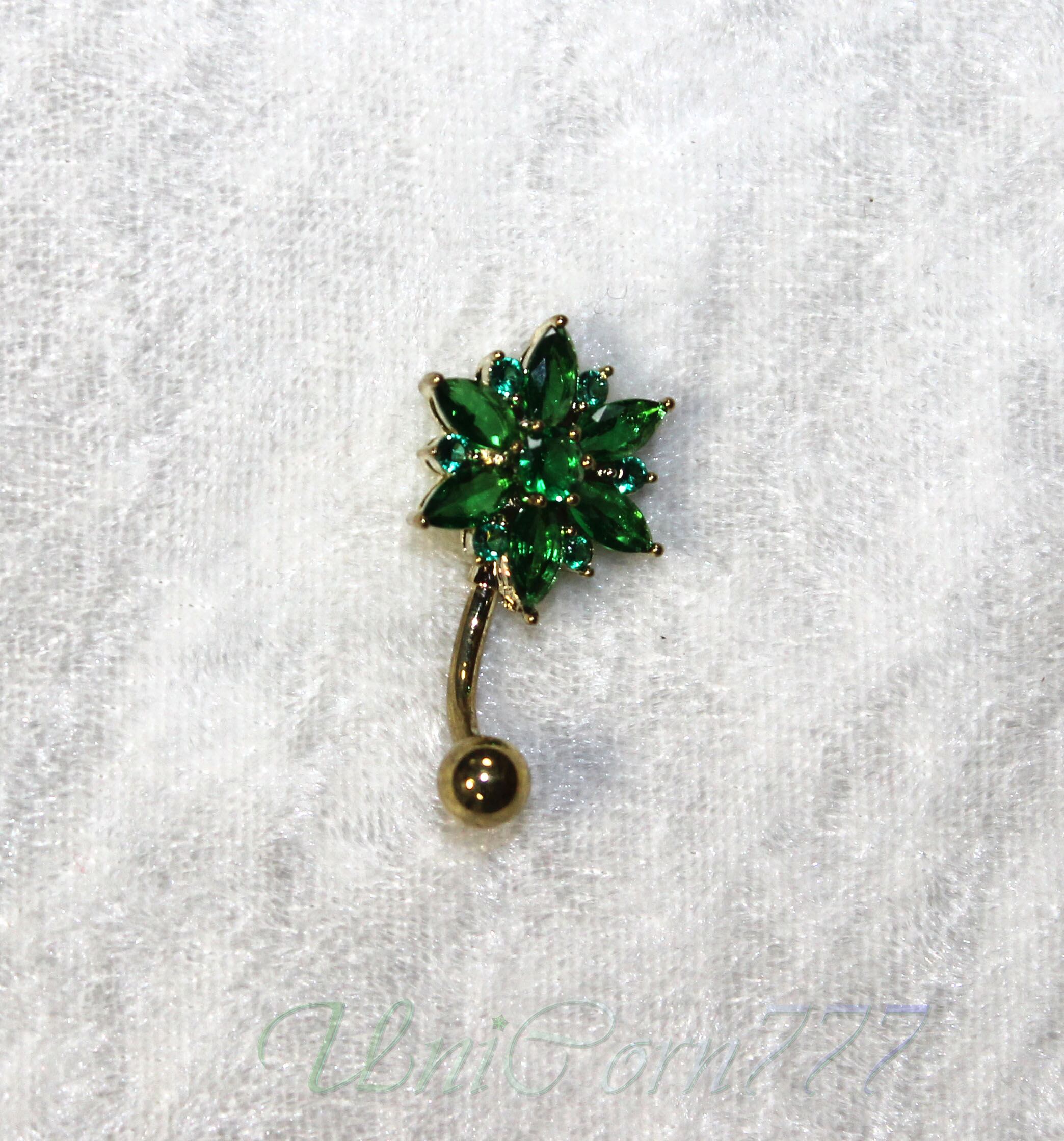 Navelピアス TypeF フォレストグリーン花 サージカルST [UNIA23001400]
