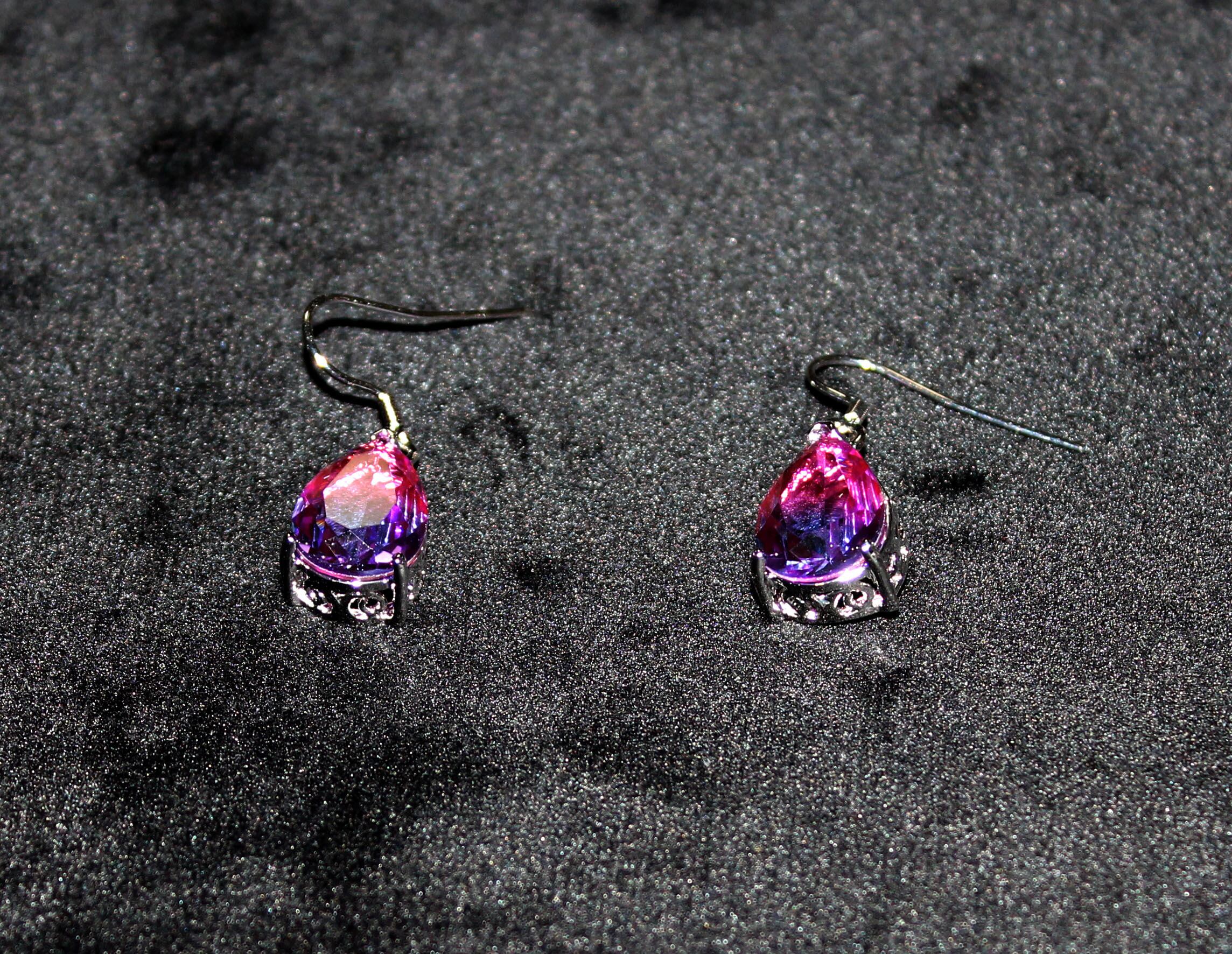 煌めきがまぶしい、ローズパープル色のピアスはいかがでしょうか。見る角度によって、異なる顔を見せる石です。