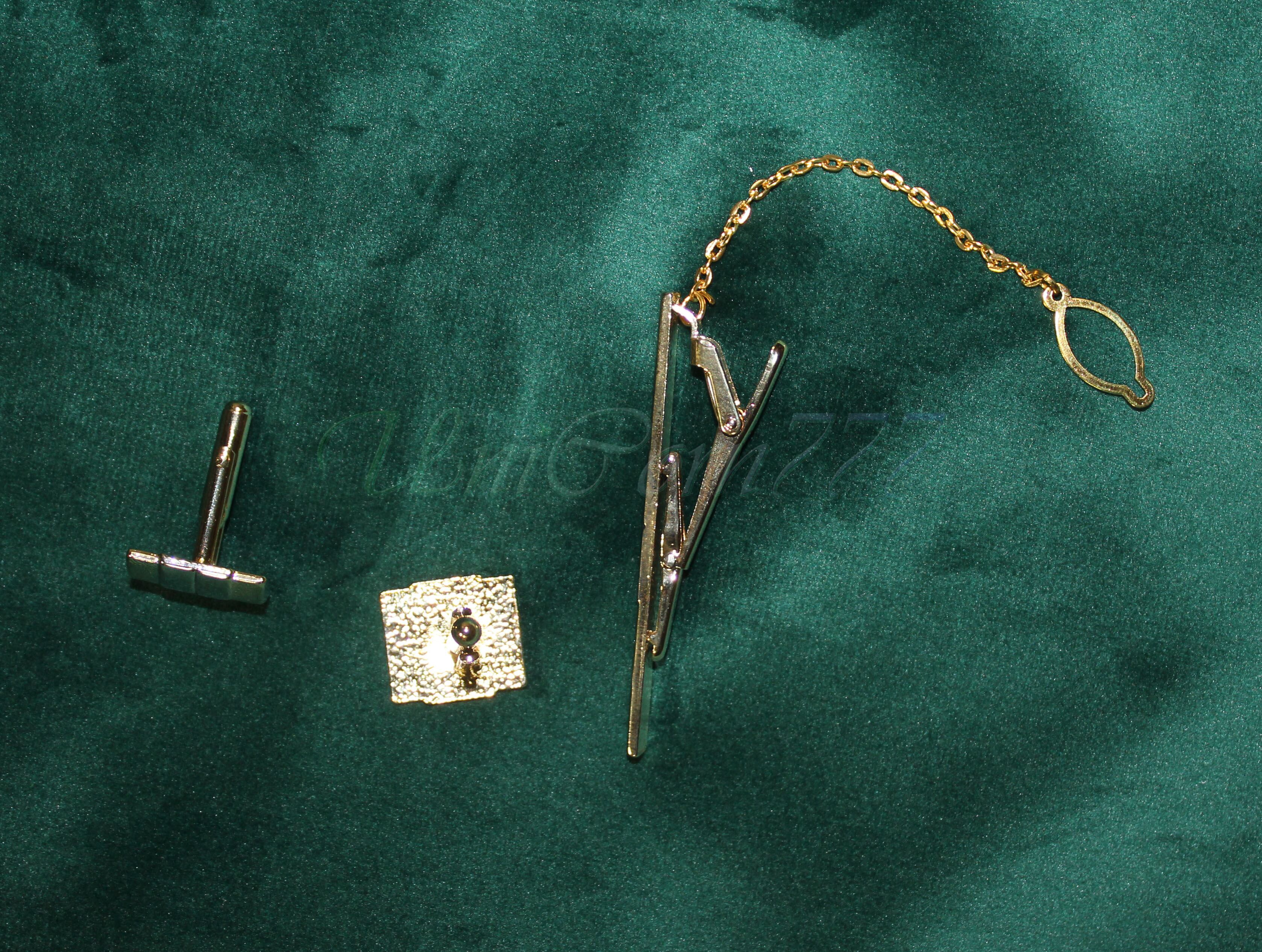ネクタイピンとカフスボタンのセット商品です。同じデザインでビシっと決めてみてはいかがでしょうか。