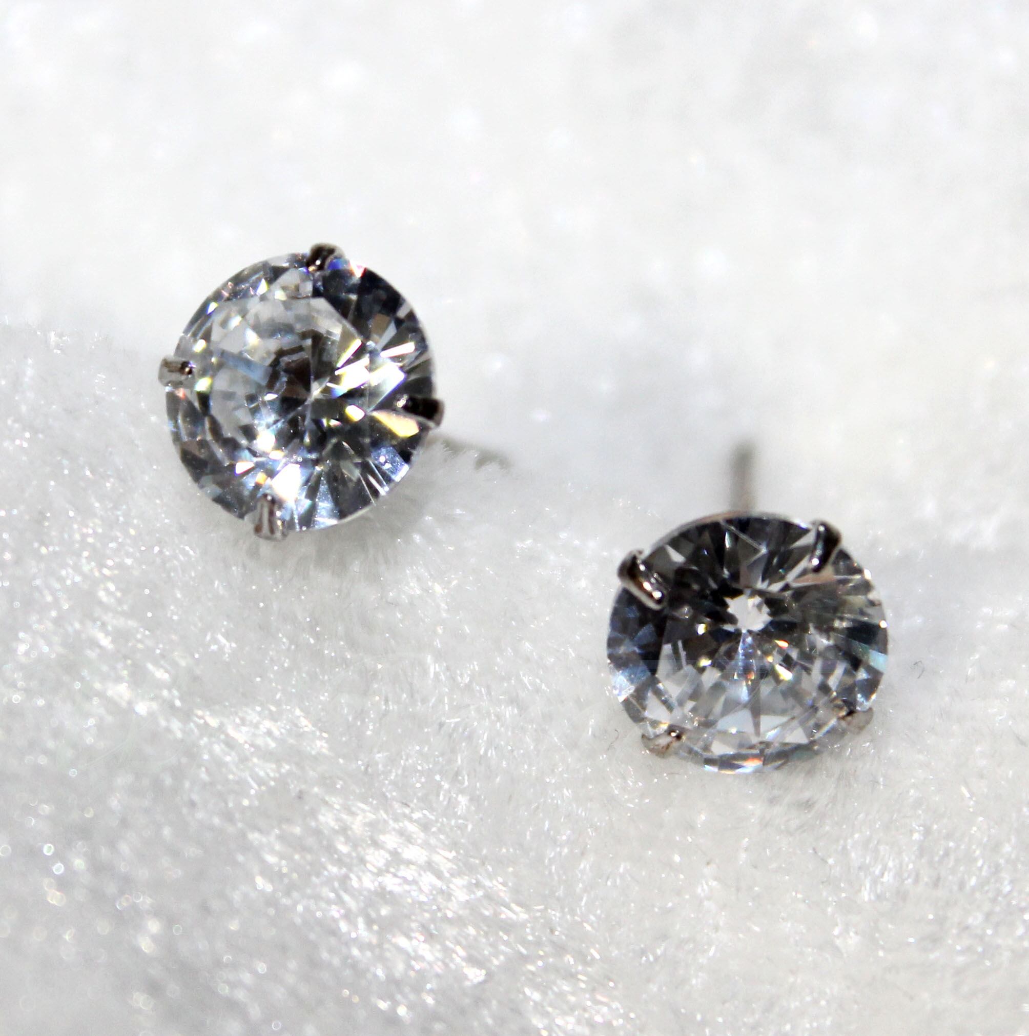 CZ 7mm 銀のスタッドピアス 4爪 (S925) [UNIA21000110]