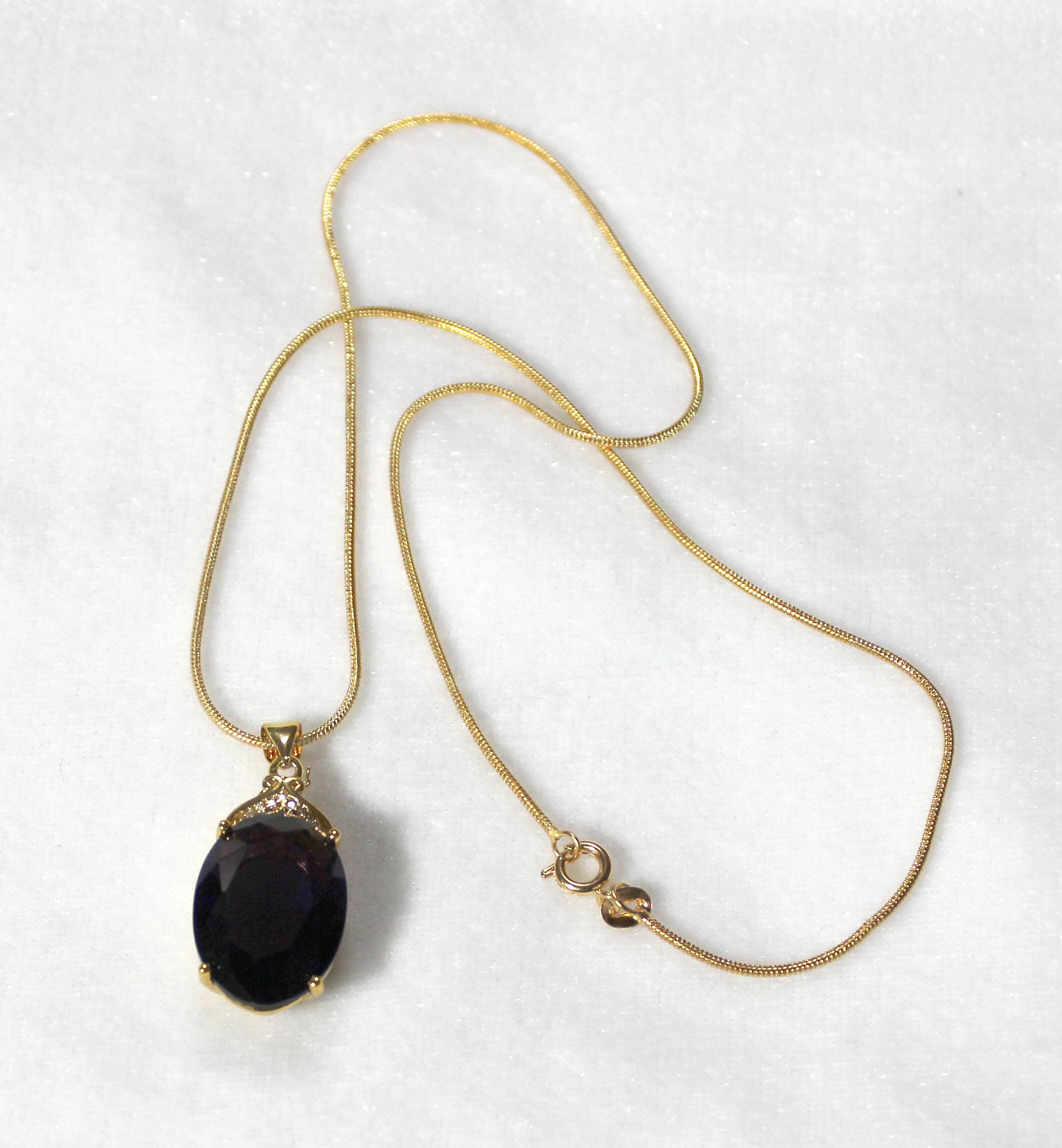 場所によってはほとんどブラックに見えるほど色の濃いアメジストです。チェーンはスネーク(ティラ)タイプで、44.5cmです。