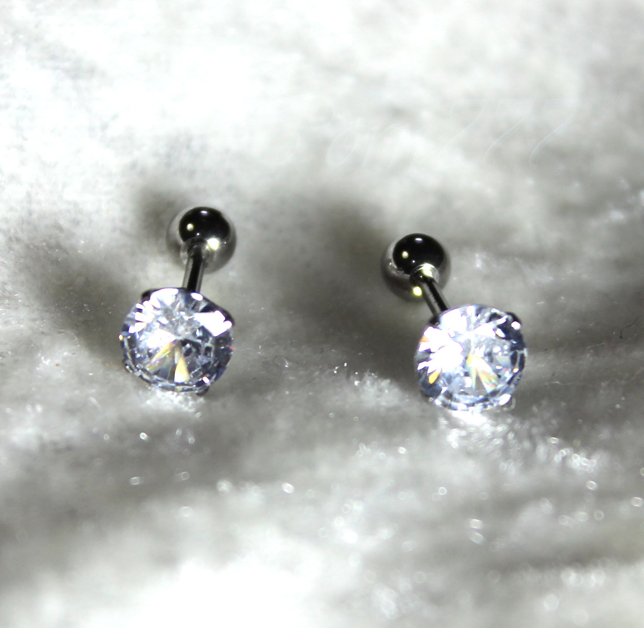 6mmのピアスです。金属部分は、アレルギーが起こりにくいサージカルステンレス(医療用合金)となっています。また、ピアス受けはネジ式のボールタイプなので、失くしにくいと思います。