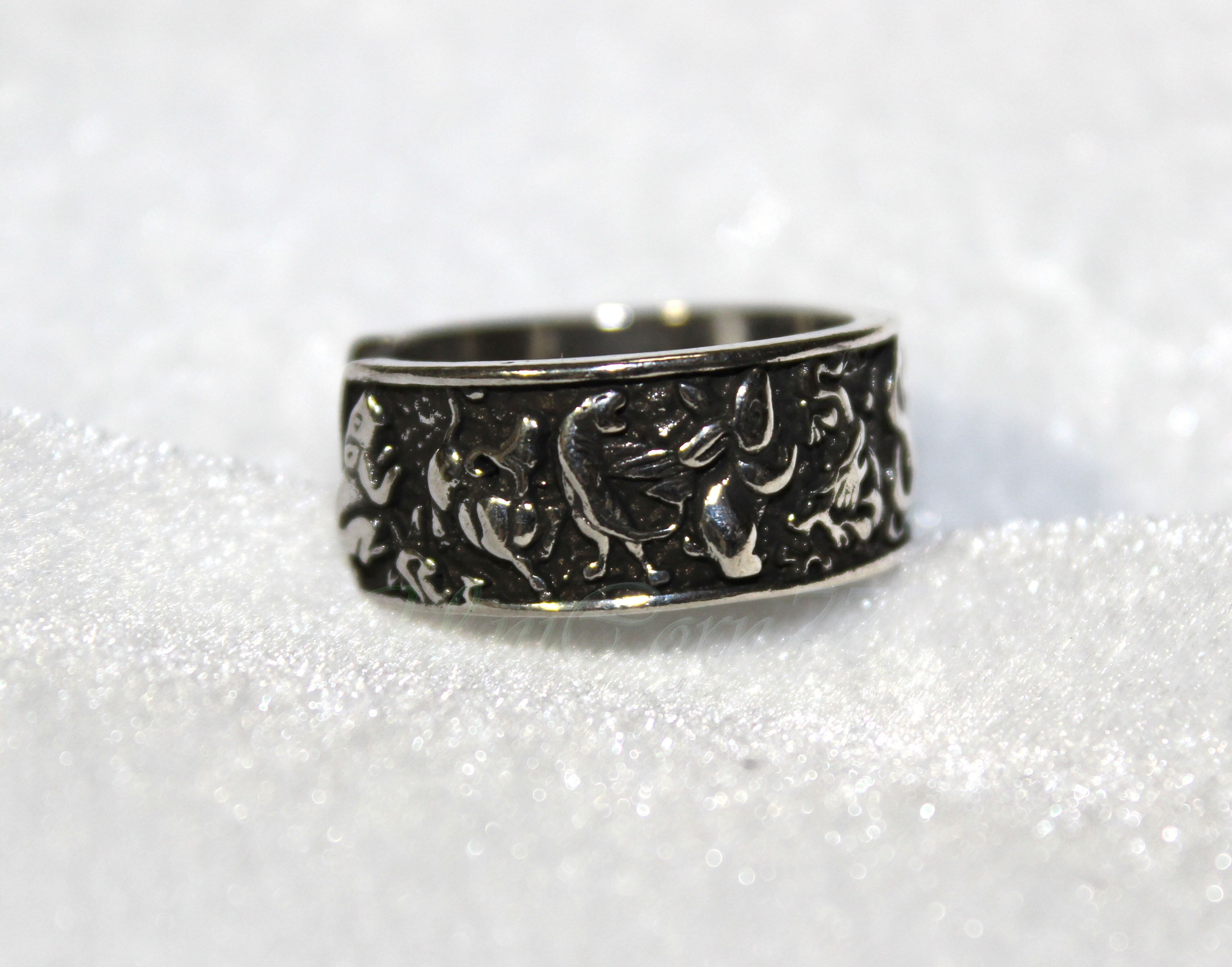 干支である十二種類の動物が彫られている指輪です。裏側には文字も刻印されてます。デフォルトのサイズは、写真にありますように、18~19号ですが、サイズフリーとなっております。