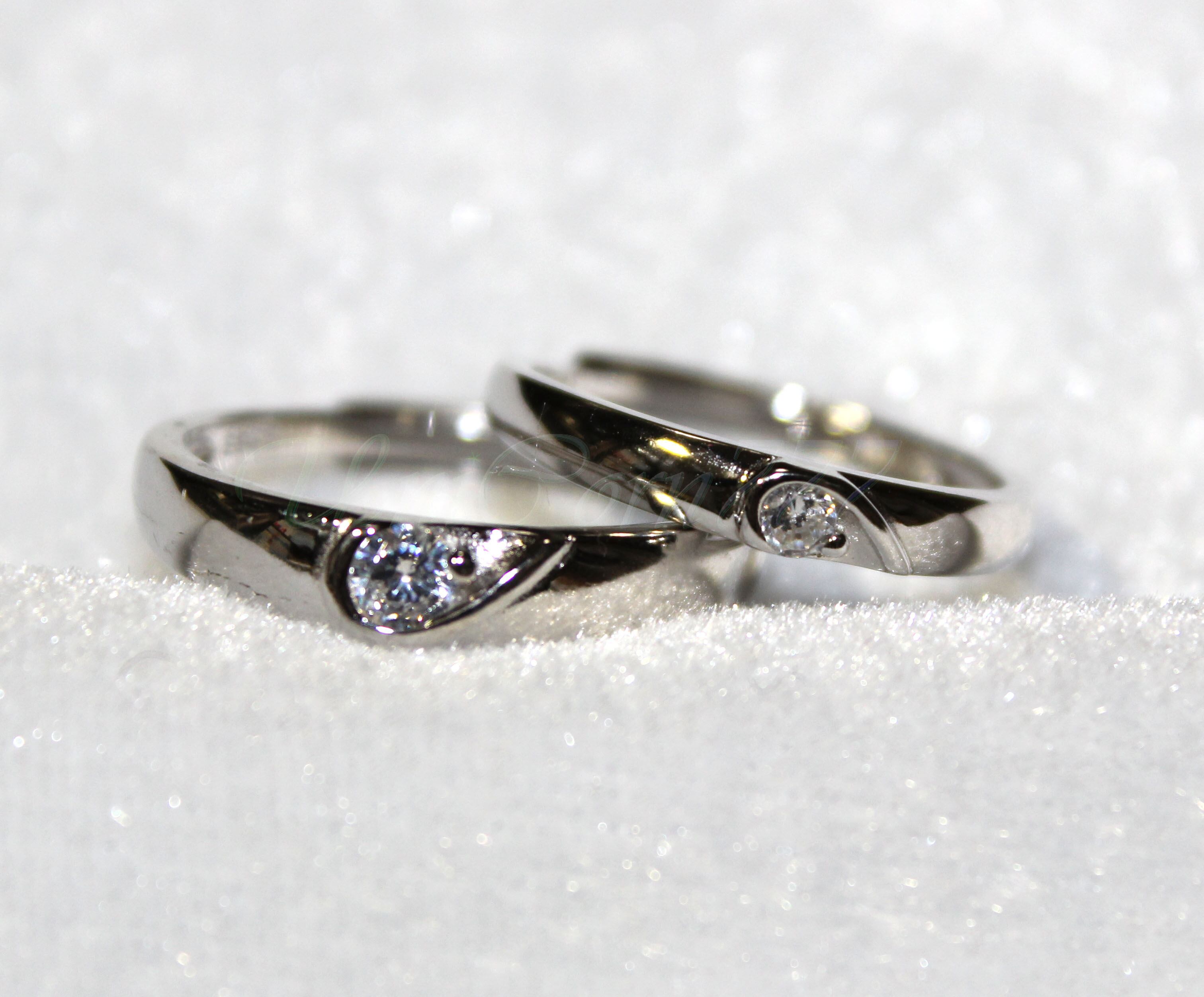 S925スターリングシルバーのペアリングです。男女ペアのリング二つを合わせると、写真のようにハート型になります。両方ともサイズフリーのオープンリングですが、男性用リングは、ほぼ18号サイズ、女性用リングは14号サイズがデフォルトの大きさです。