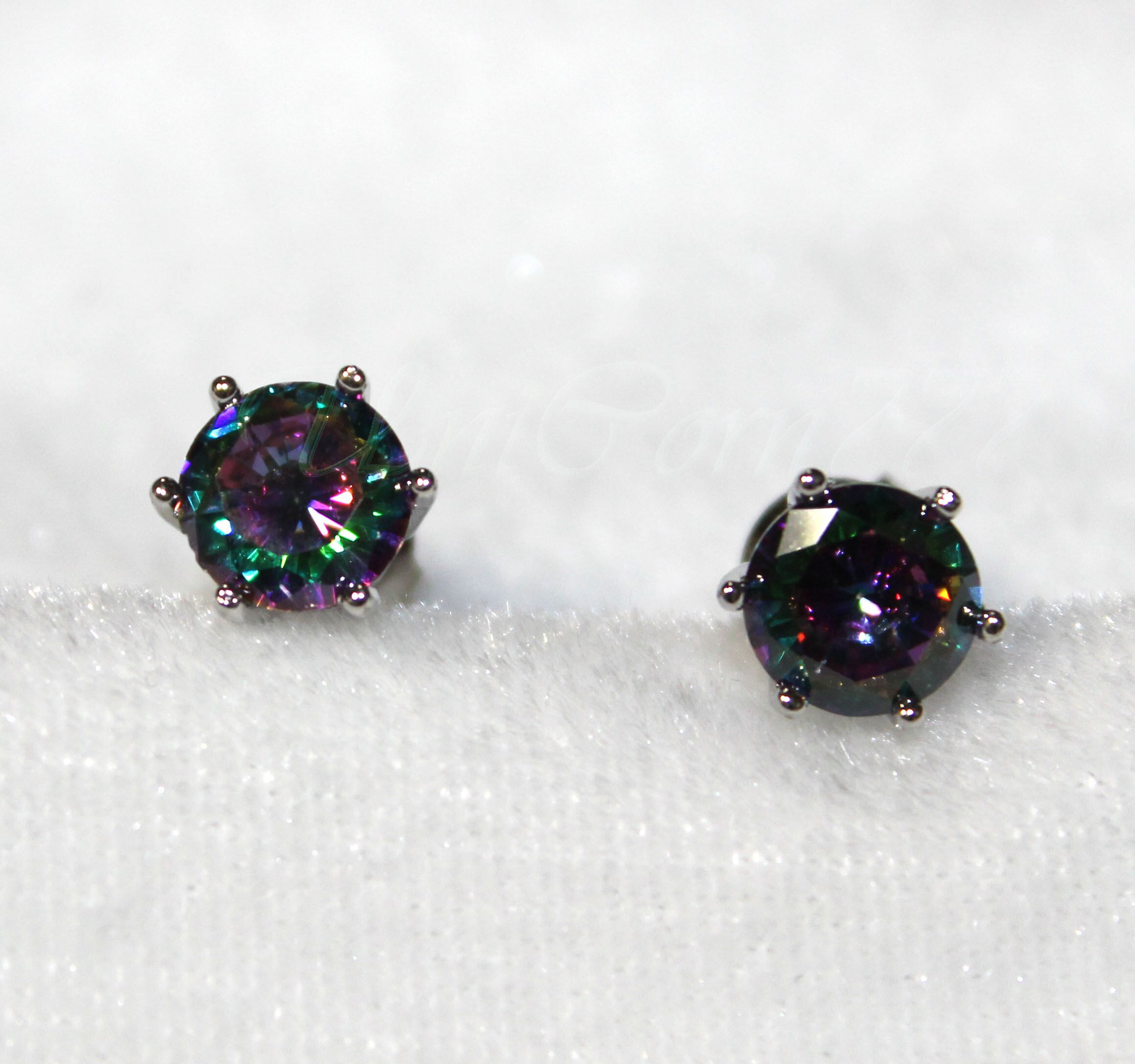 CZ 7mm 虹色のスタッドピアス 6爪 [UNIA21000302]