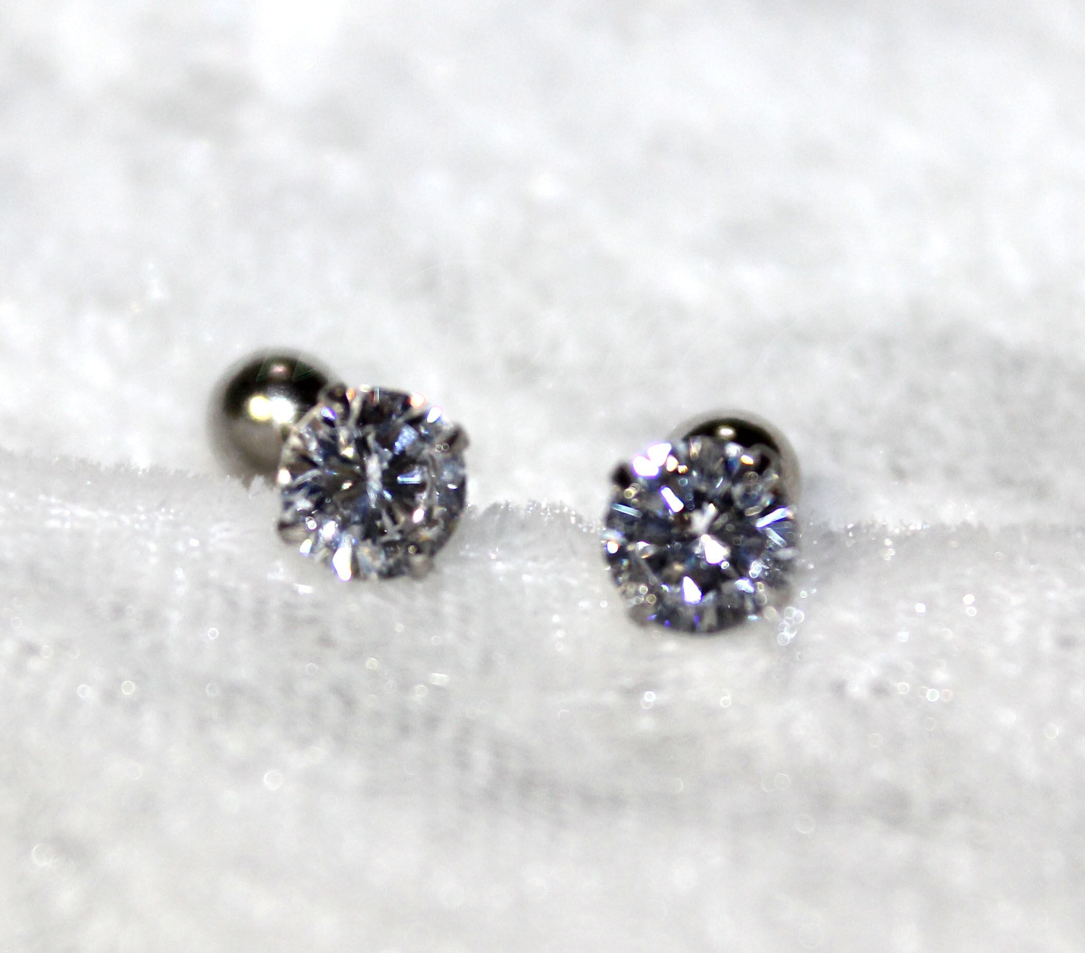 CZ 5mm 銀のスタッドピアス ネジ式ボール受け 4爪 (S925) [UNIA21000237] | UniCorn777 (ユニコーンスリーセブン) ファンタジー系 アクセサリー インテリア ネットショップ