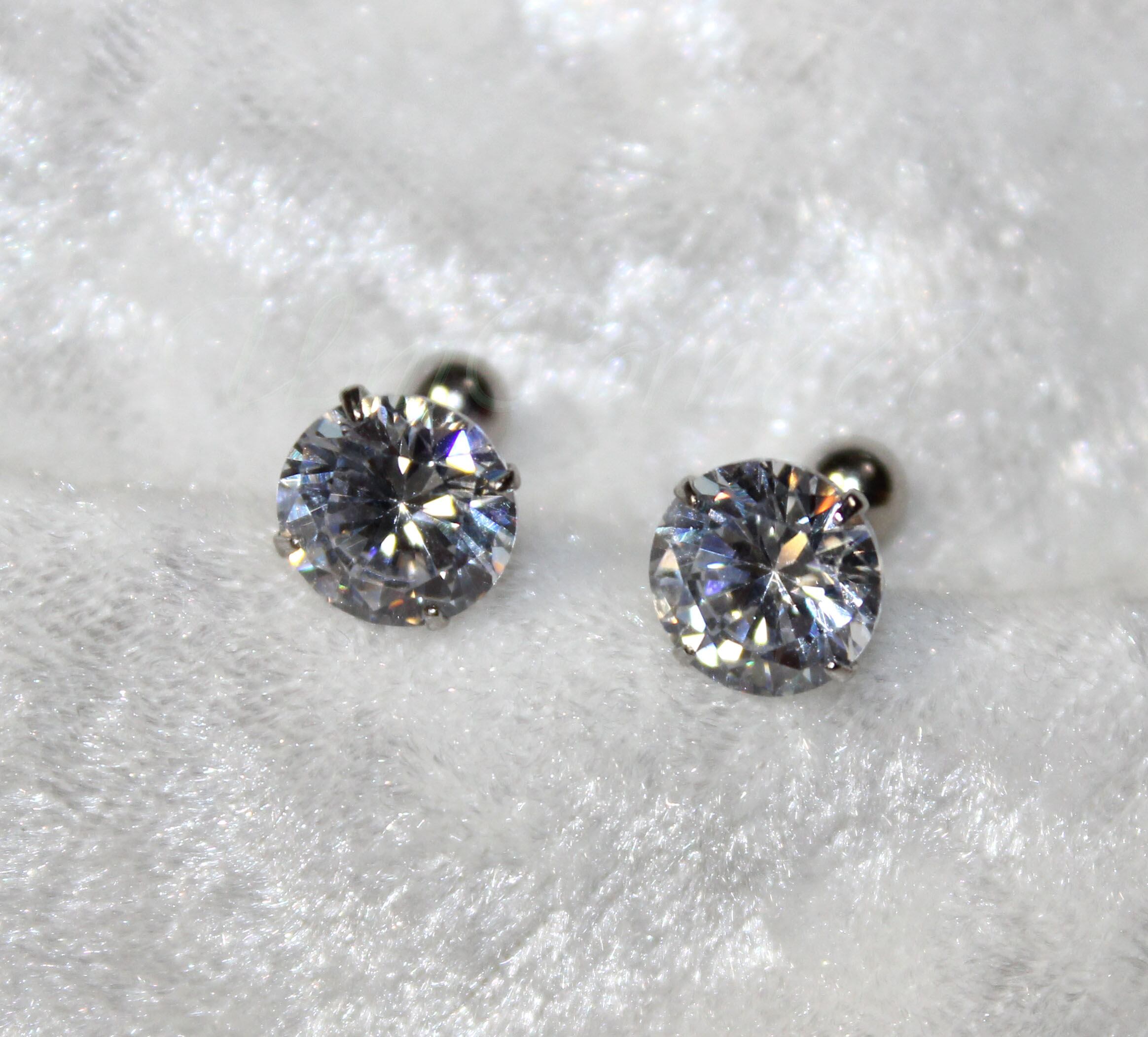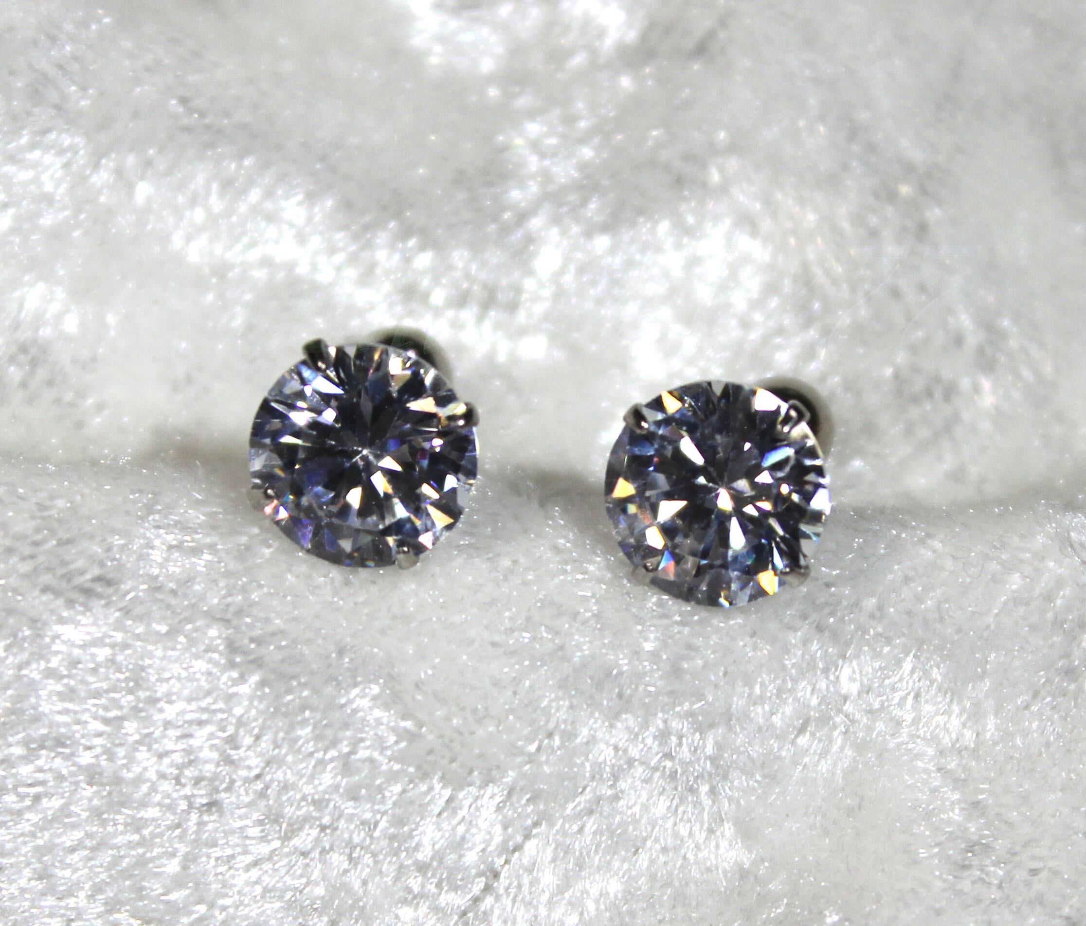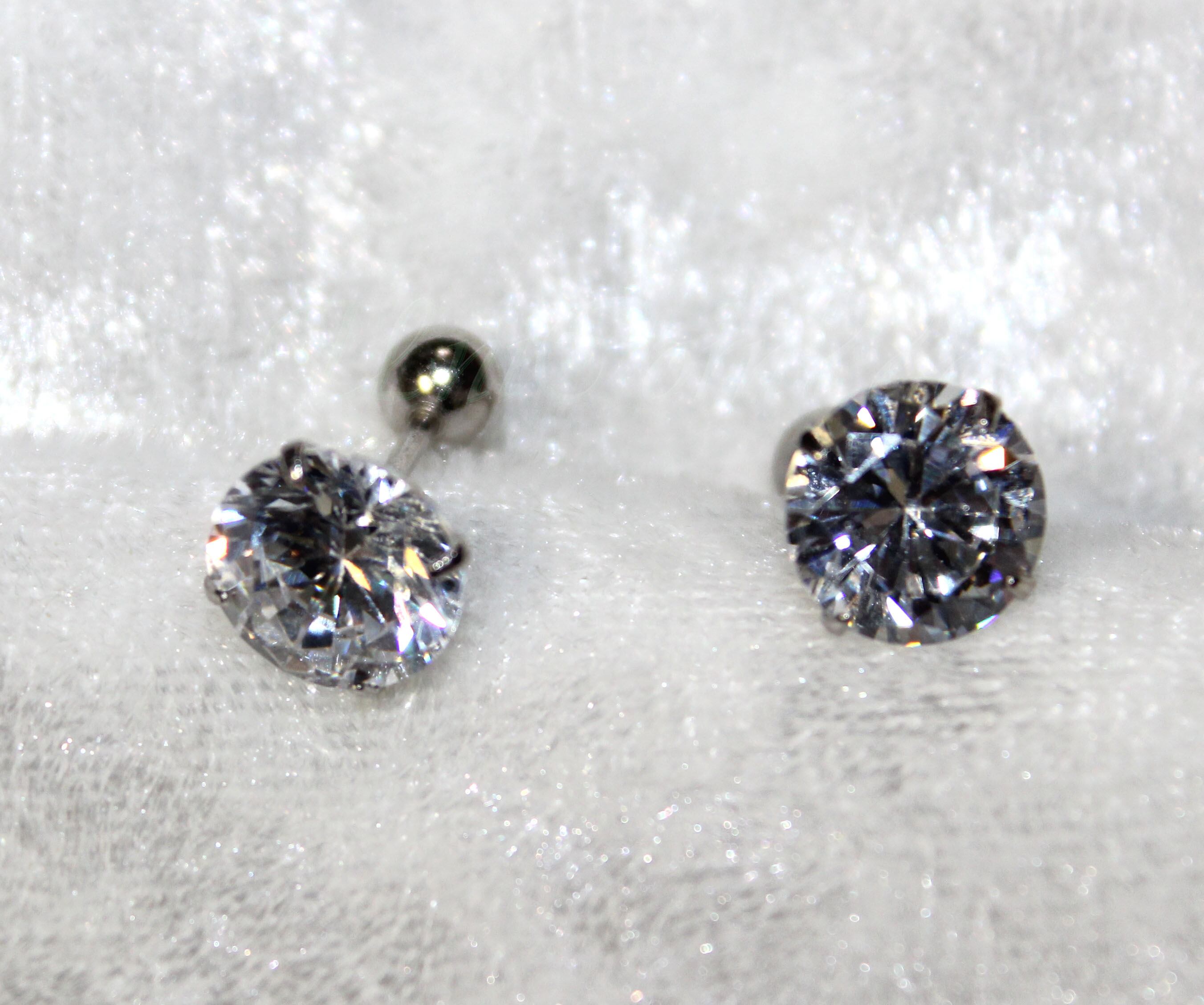 CZ 8mm 銀のスタッドピアス ネジ式ボール受け 4爪 (S925) [UNIA21000236]