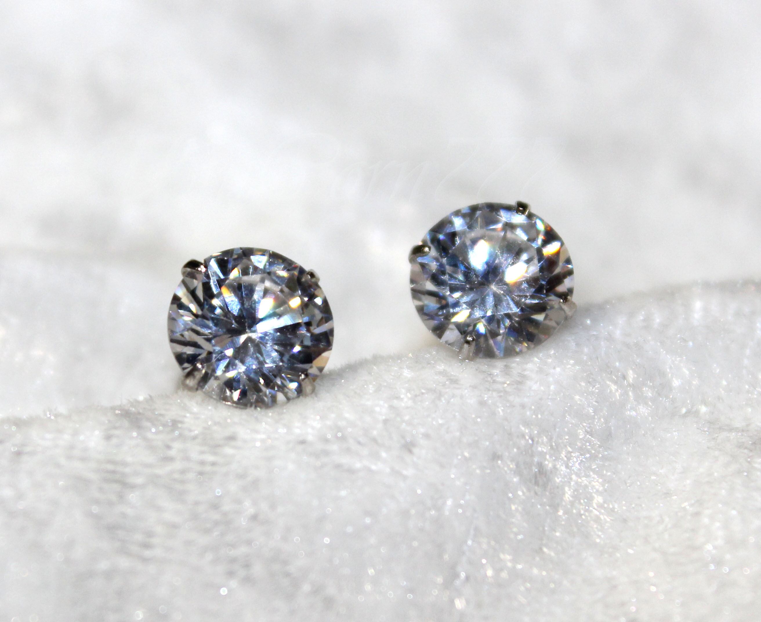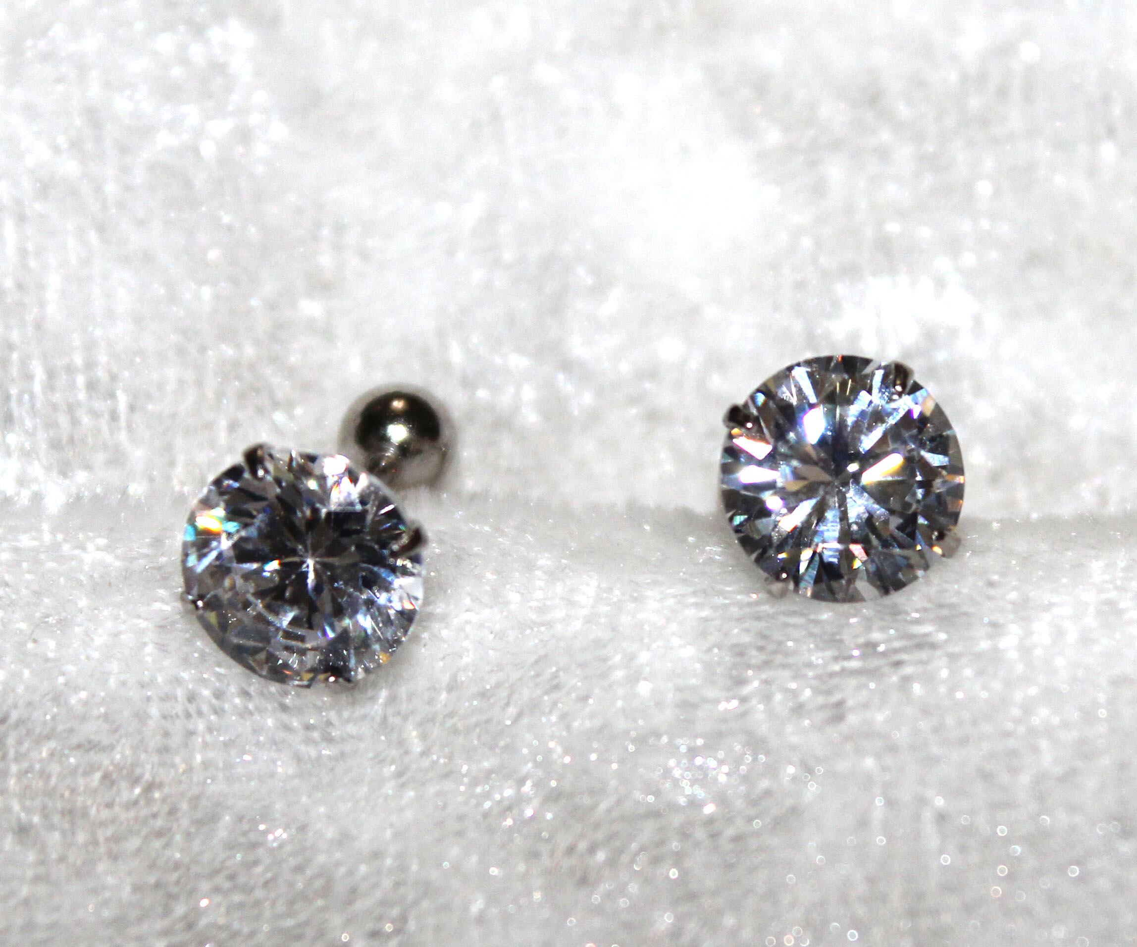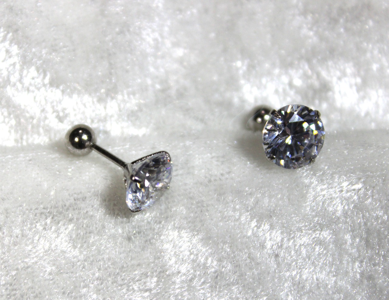 CZ 8mm 銀のスタッドピアス ネジ式ボール受け 4爪 (S925) [UNIA21000236]