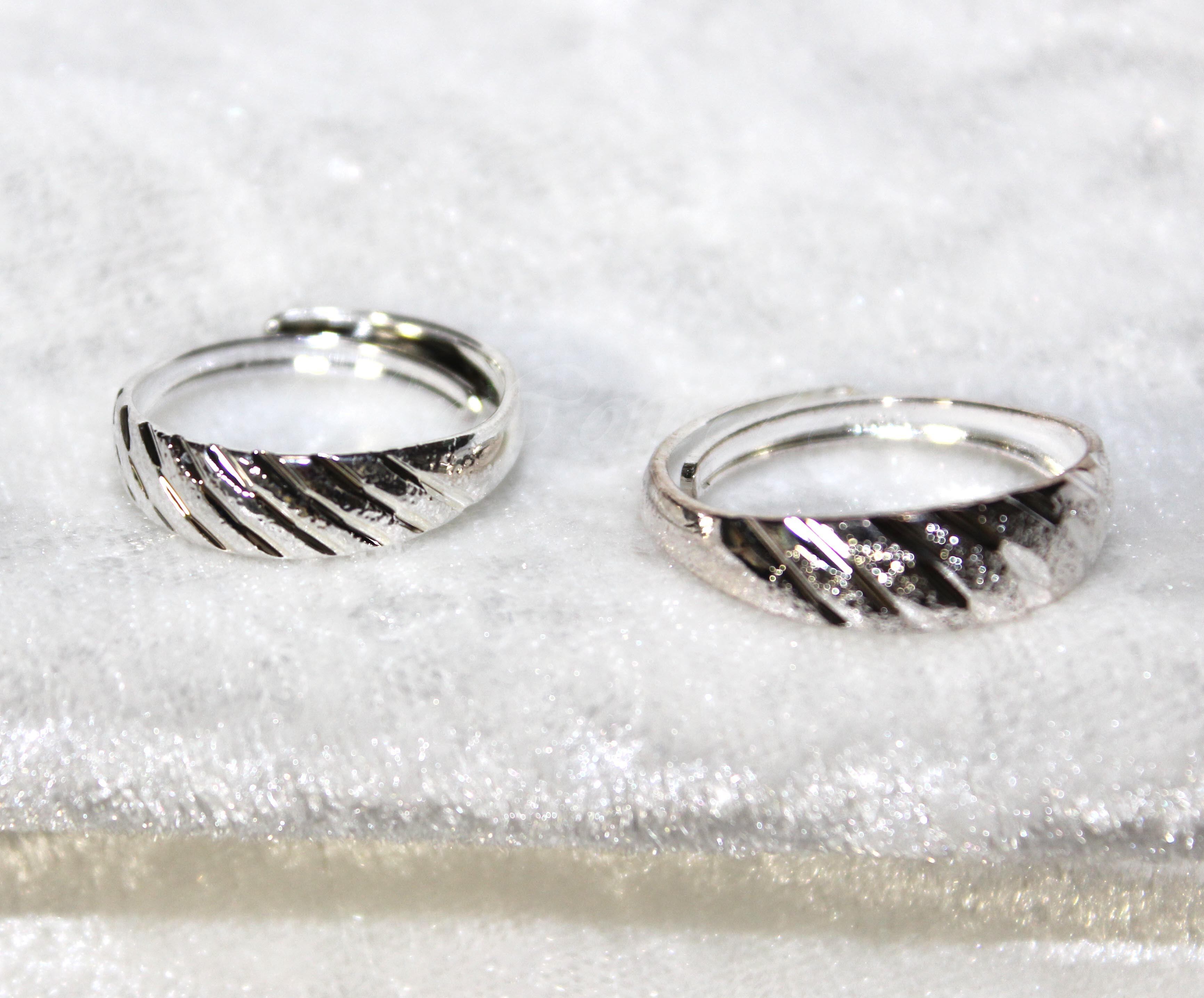 ペアリング、別名カップルリングです。両方ともオープンリングなので、サイズフリーですが、男性用はほぼ13号、女性用はほぼ10号です。