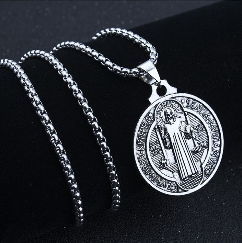 聖ベネディクトのメダイ(「メダイ」とはポルトガル語でメダルのことです)は邪悪な魔力(嵐、毒、疫病、悪魔)に対する力があるメダイとして知られています。祝福の言葉と、悪霊を追い出す言葉を刻んだ十字架やメダイを身につけることによって、神の祝福をいただき、悪霊を退けようと願うのです。その言葉の意味は以下の通りです。