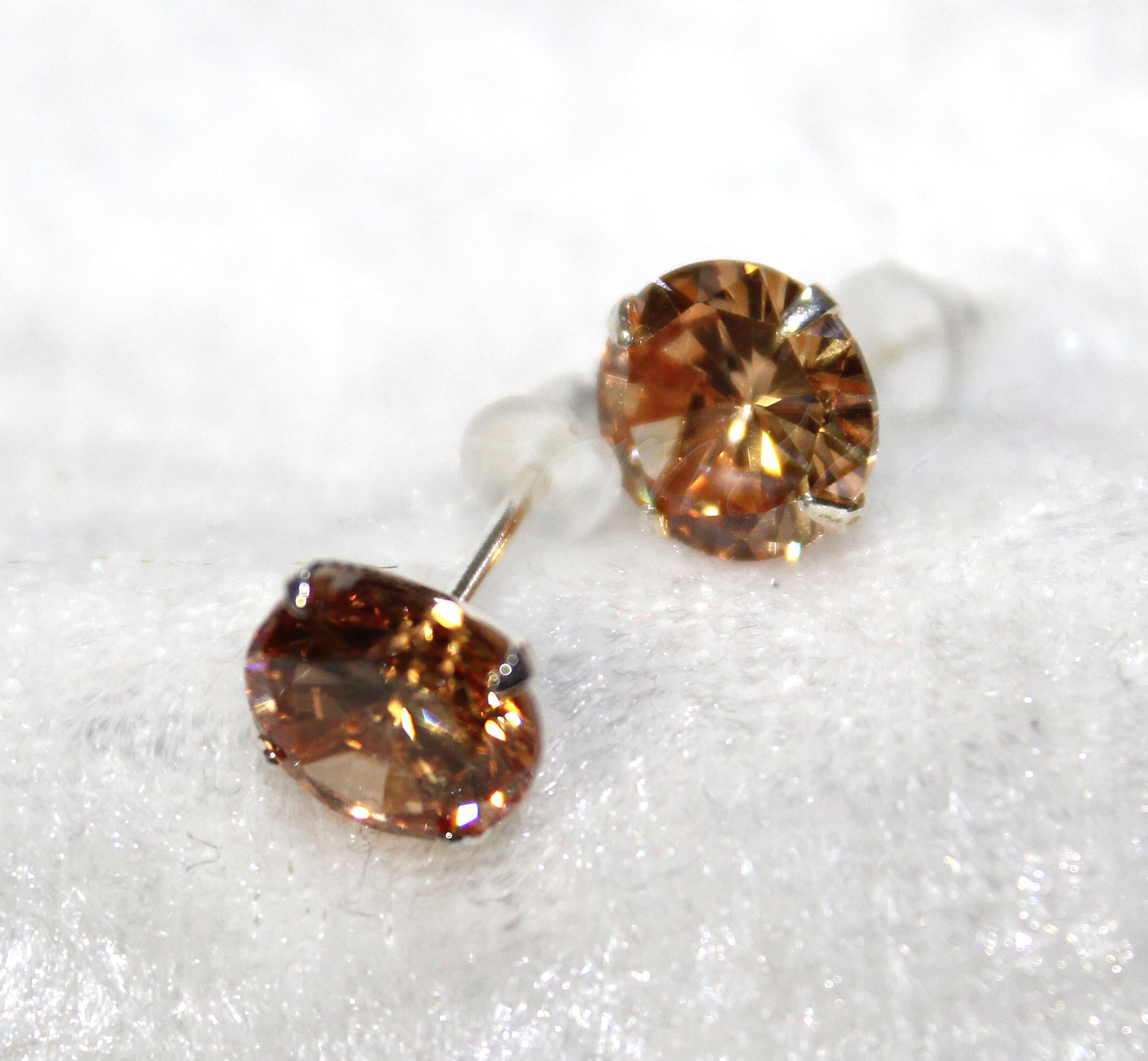 CZ 7mm 琥珀色のスタッドピアス 4爪 (S925銀製品) [UNIA21000251]