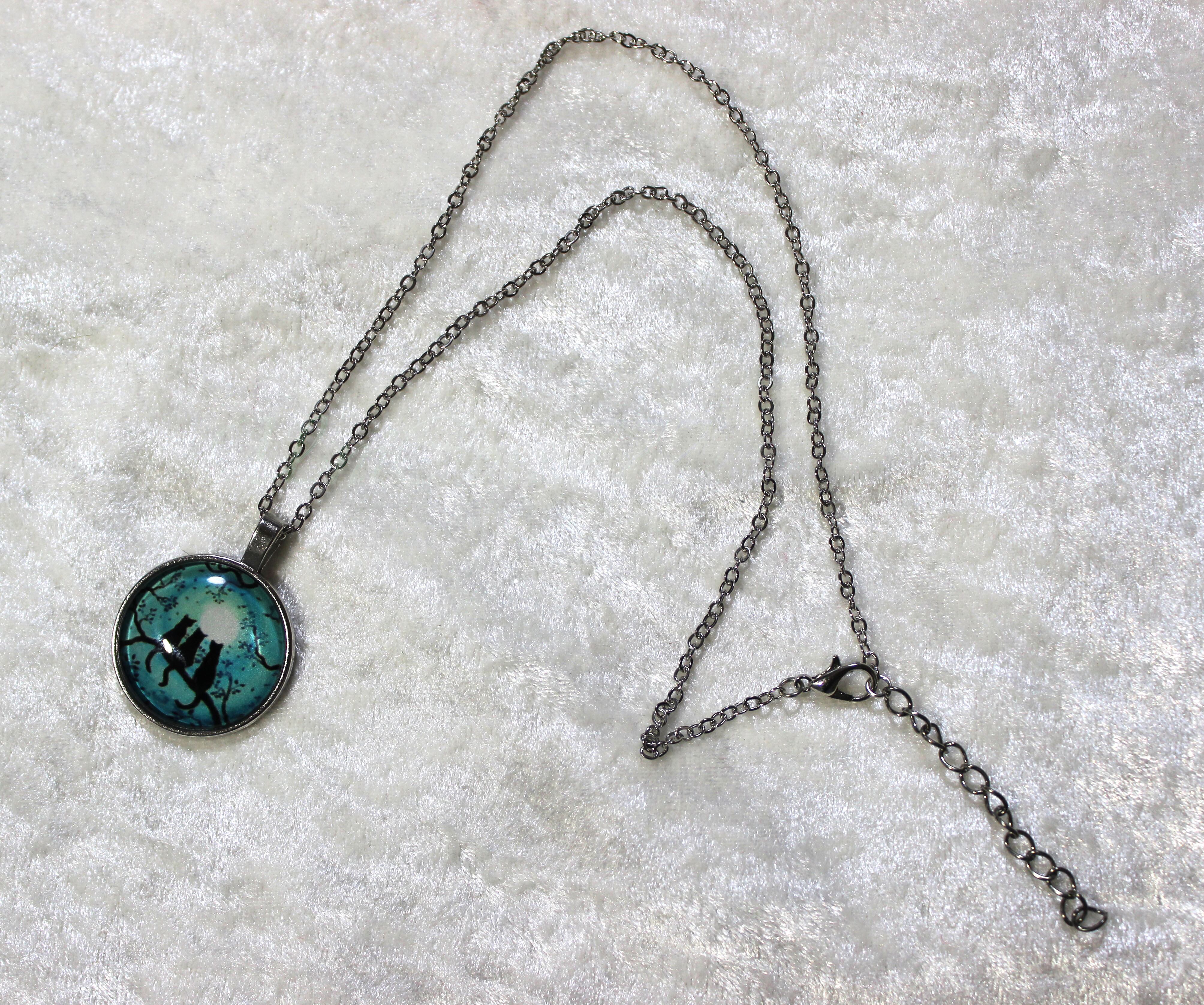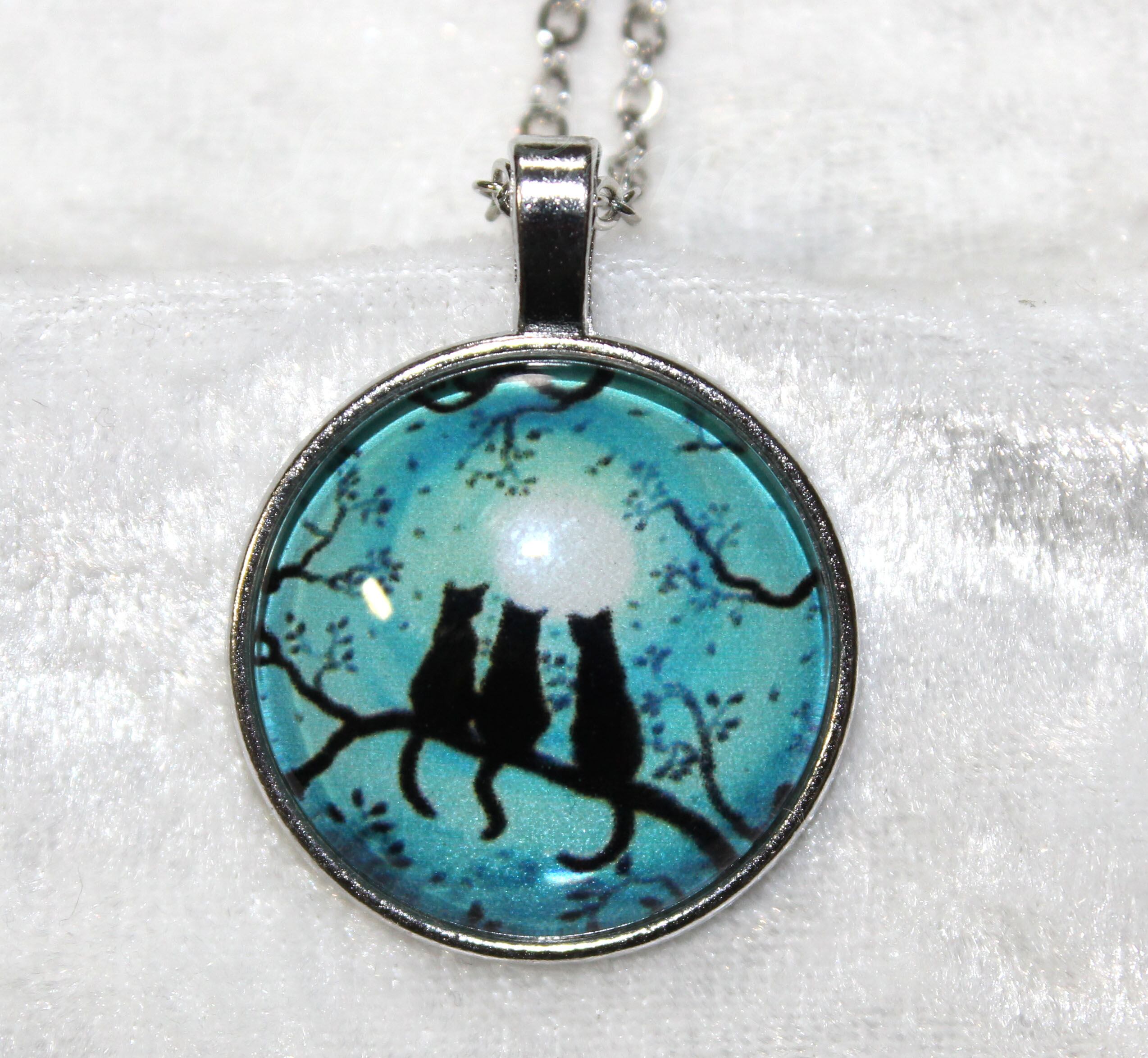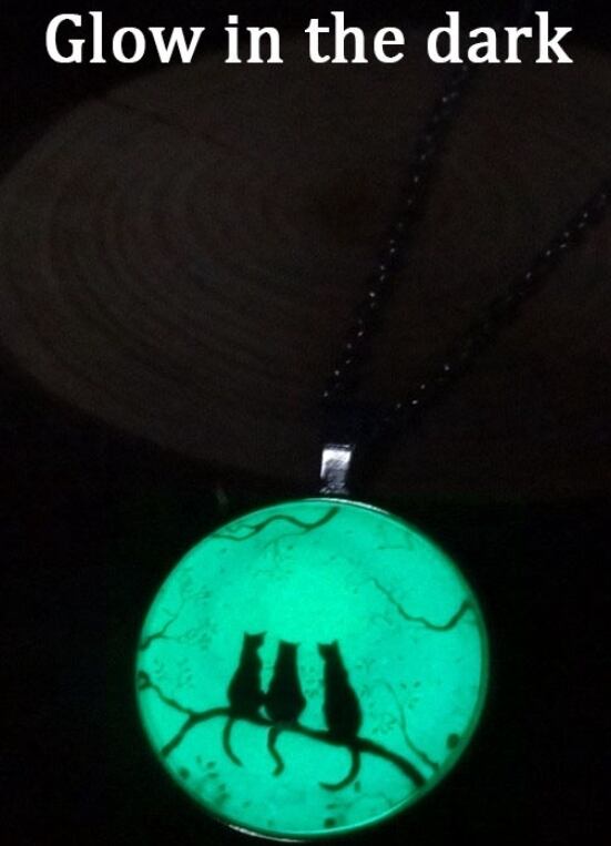 3匹の猫が仲良く寄り添っているデザインのペンダント・ネックレスです。光を吸収して暗い中ではしばらく光ります。チェーンの長さは、46cm+アジャスター4cmです。