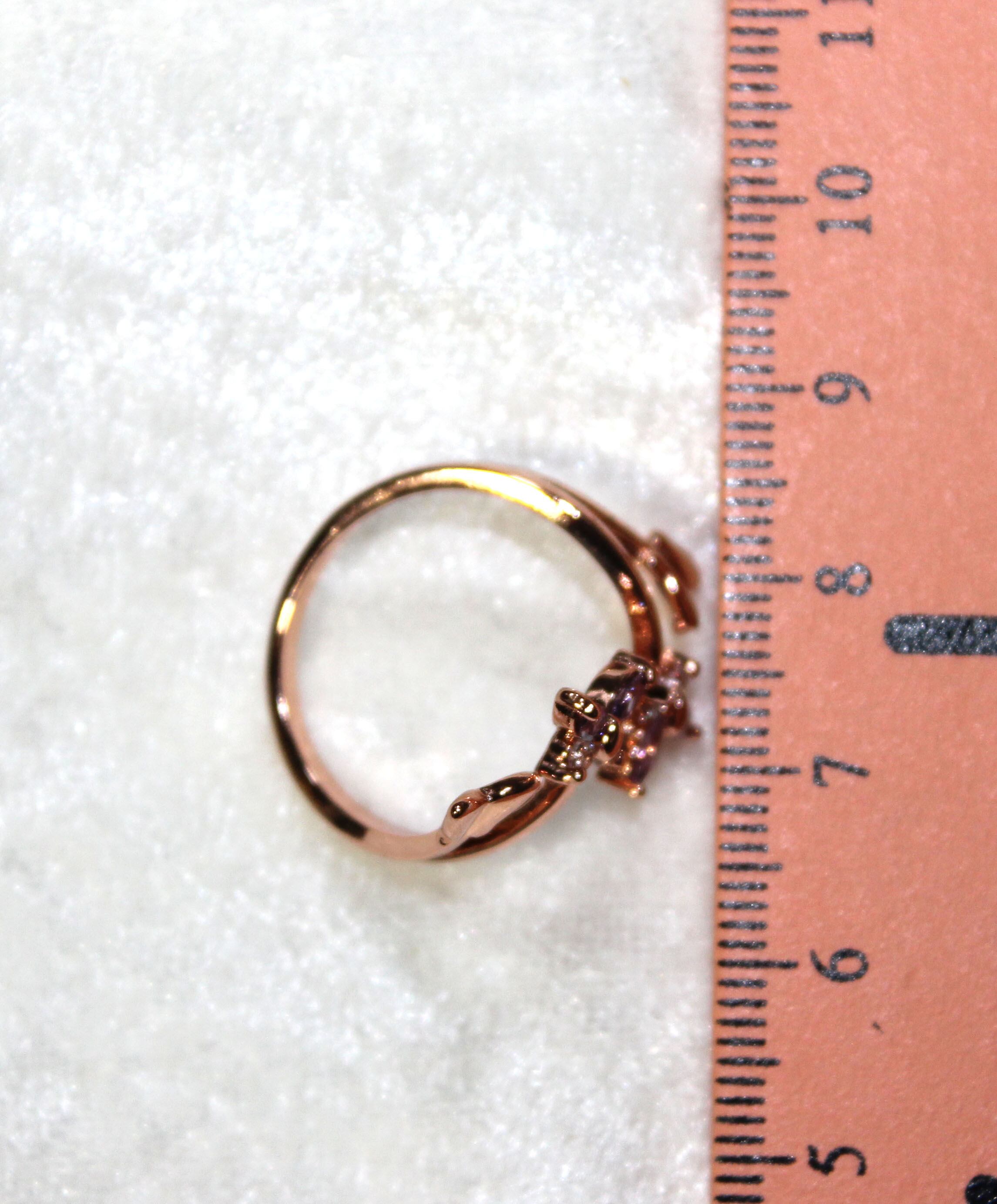 指の周りを蝶が舞っているかのような指輪です。サイズフリーのオープンリングですが、デフォルトの大きさは13号程度です。
