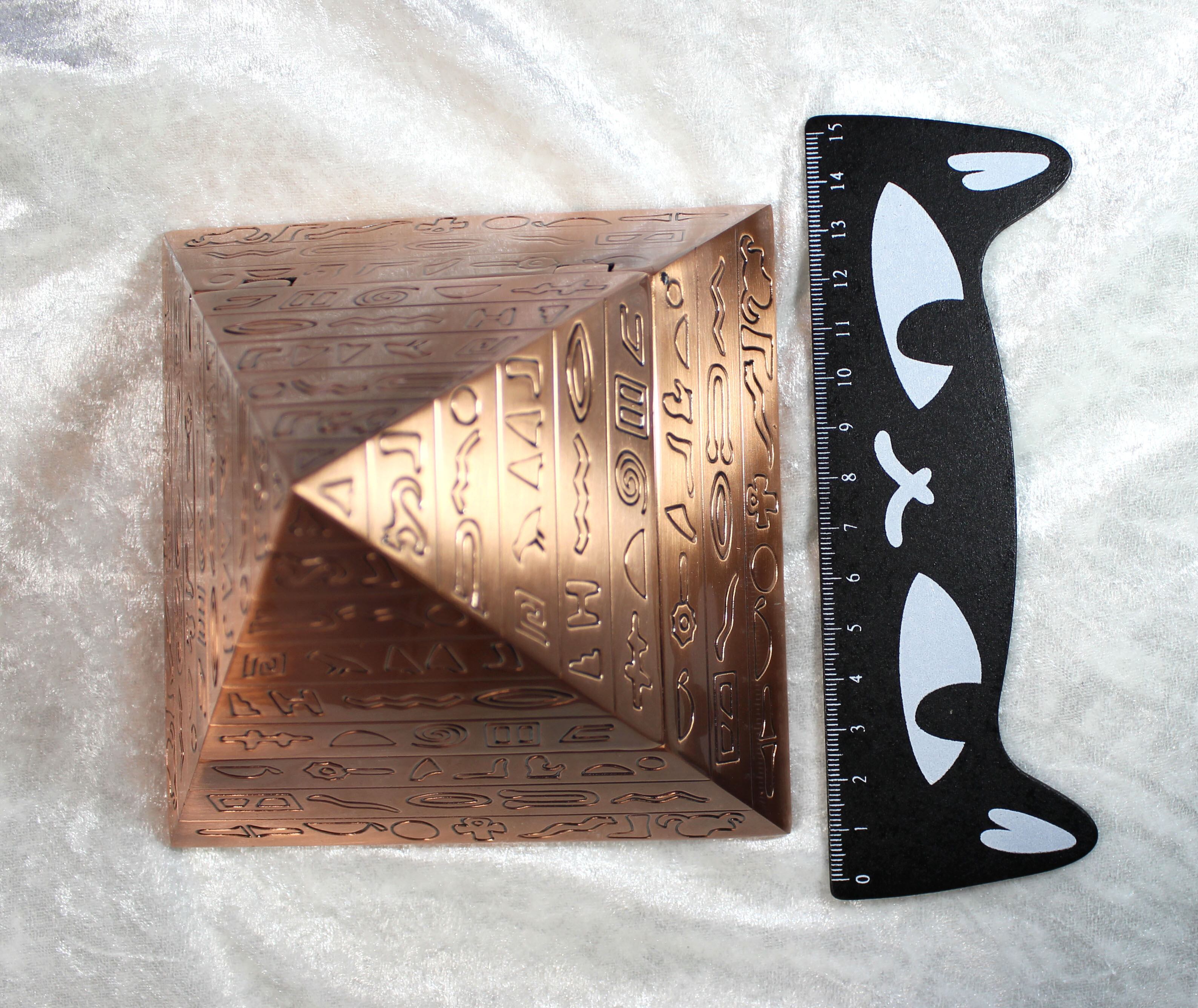 ピラミッド型の金属製灰皿です。写真の通り、上部部分がパカっと開きます。ピラミッドがお好きな方で、おタバコを吸われる方に。