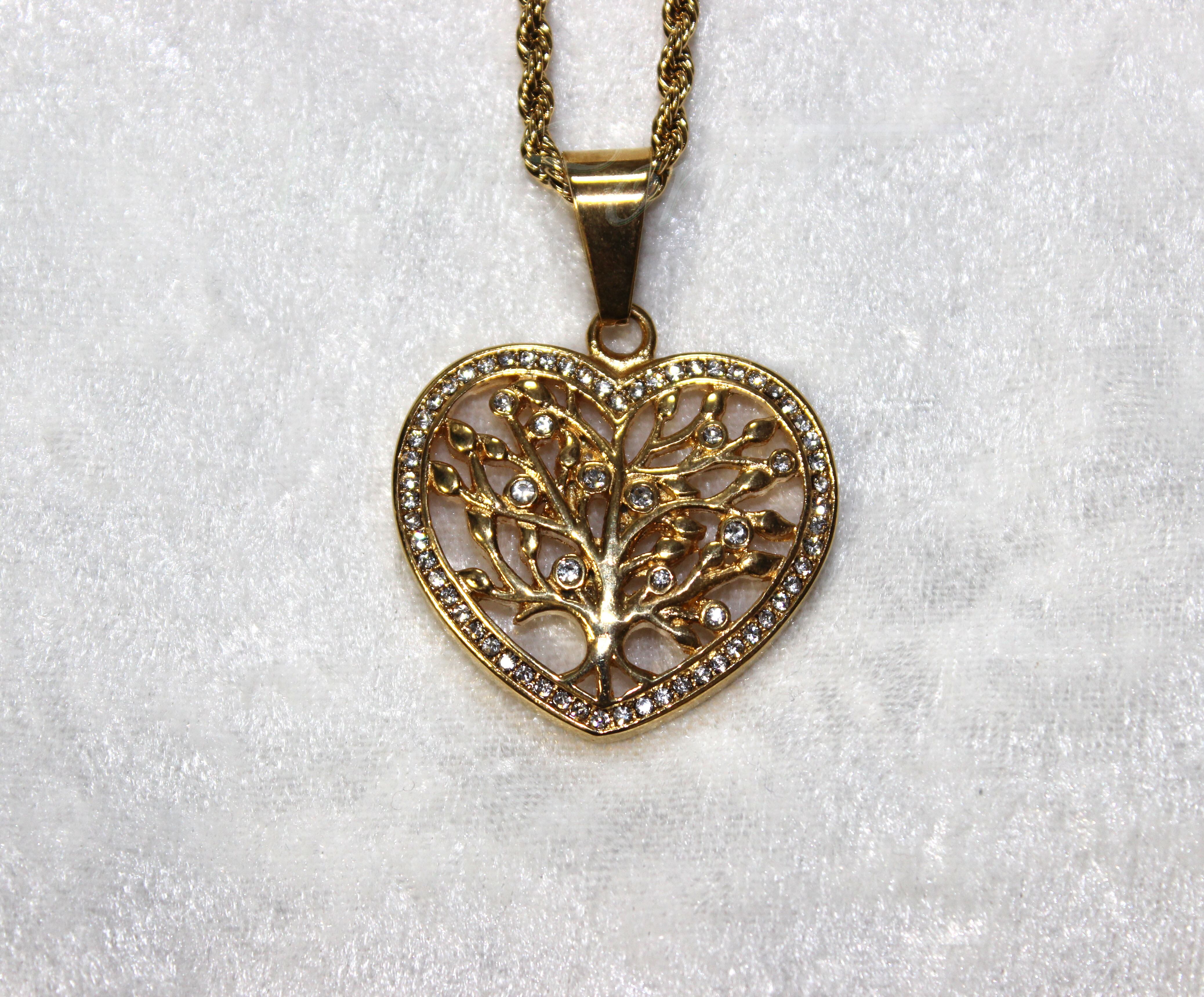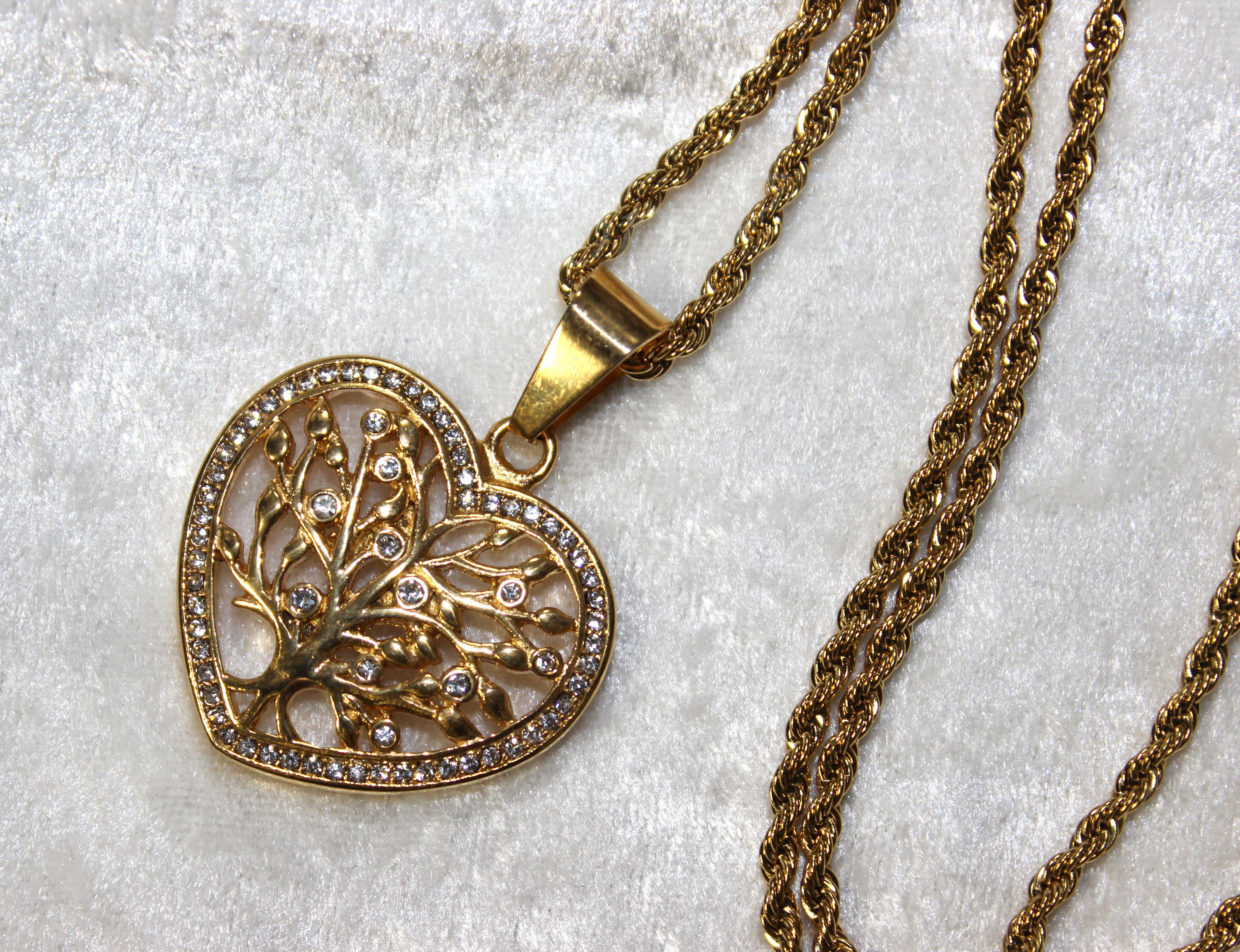金属アレルギーの方に最適な、316L医療用合金製です。「生命の樹」をモチーフにしたハート型のネックレスです。