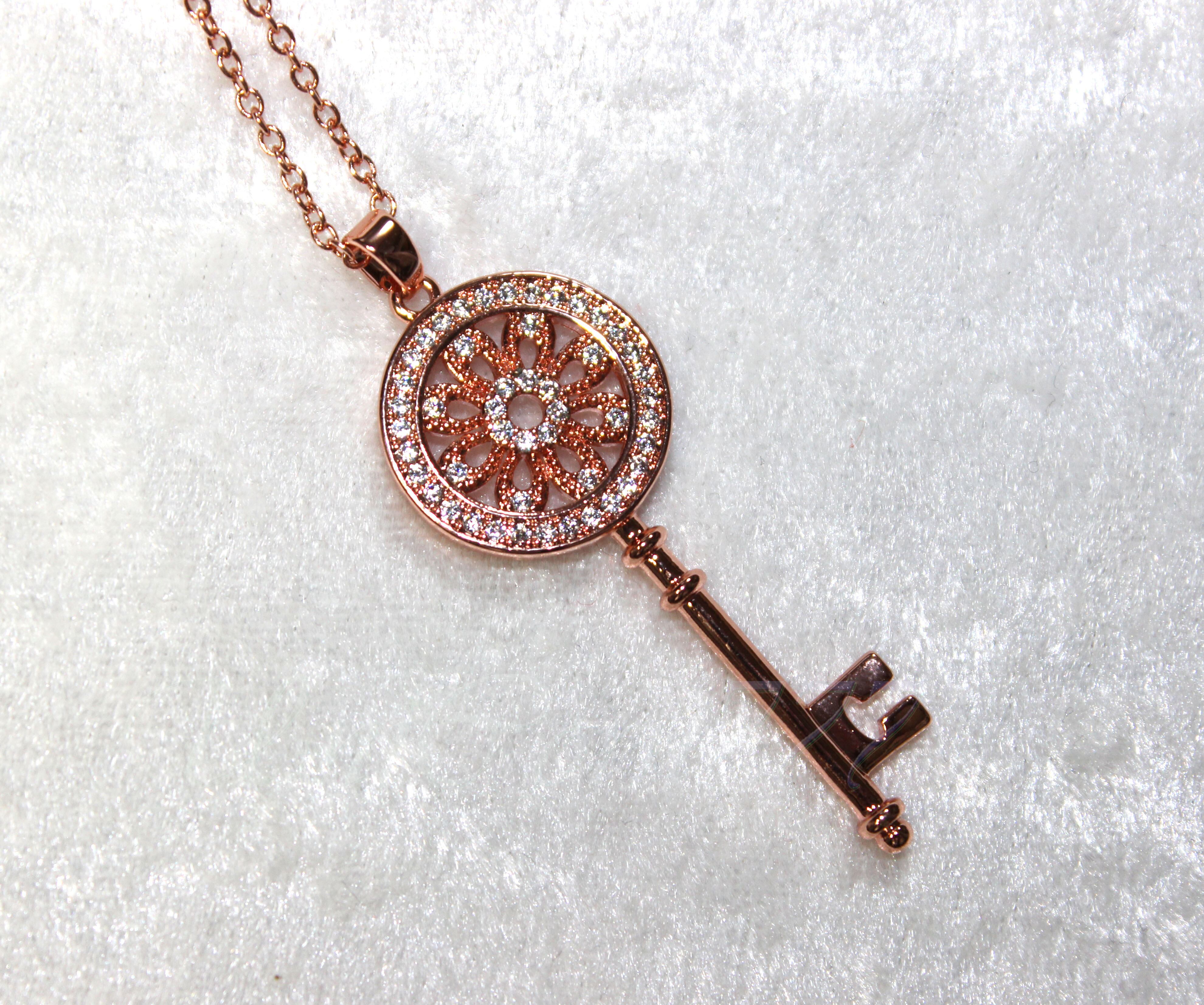 キーの形をモチーフにしたピンクゴールドのネックレスです。チェーンの長さは45cmです。
