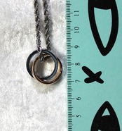 アレルギー体質の方に最適な、サージカルステンレスの材質で作られたネックレスです。リングの外径は21mm、チェーンは麻縄タイプで、45cmです。リングとチェーンの魅力の両方を楽しめるネックレスとなっております。