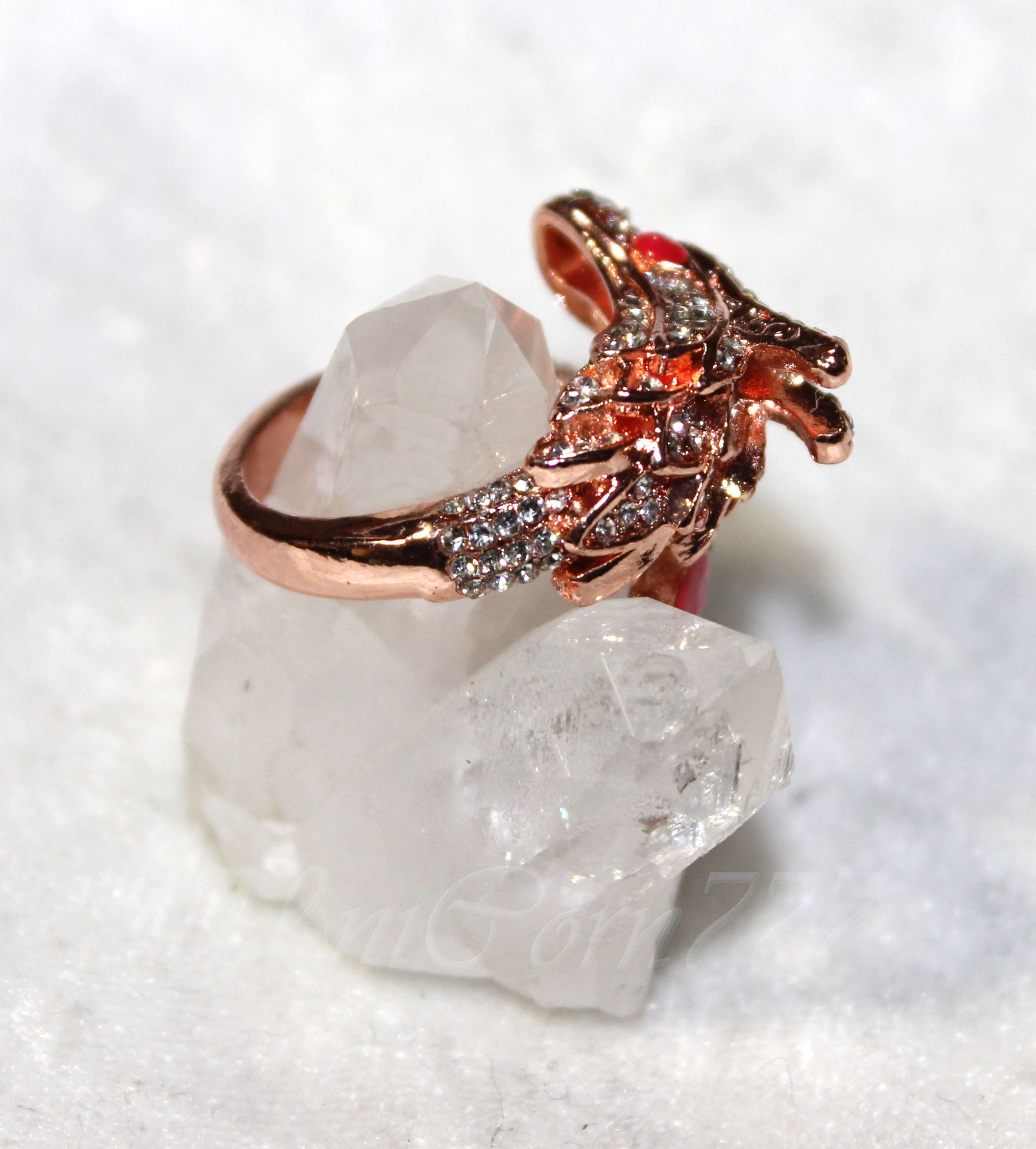 竜頭をモチーフにした指輪です。大きさは、オープンリングなのでサイズフリーですが、デフォルトの大きさは14号程度です。
