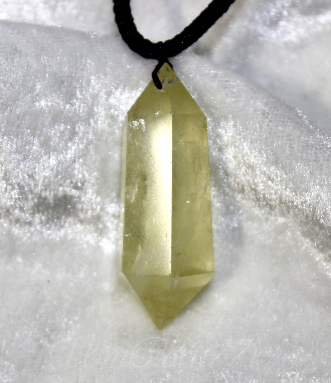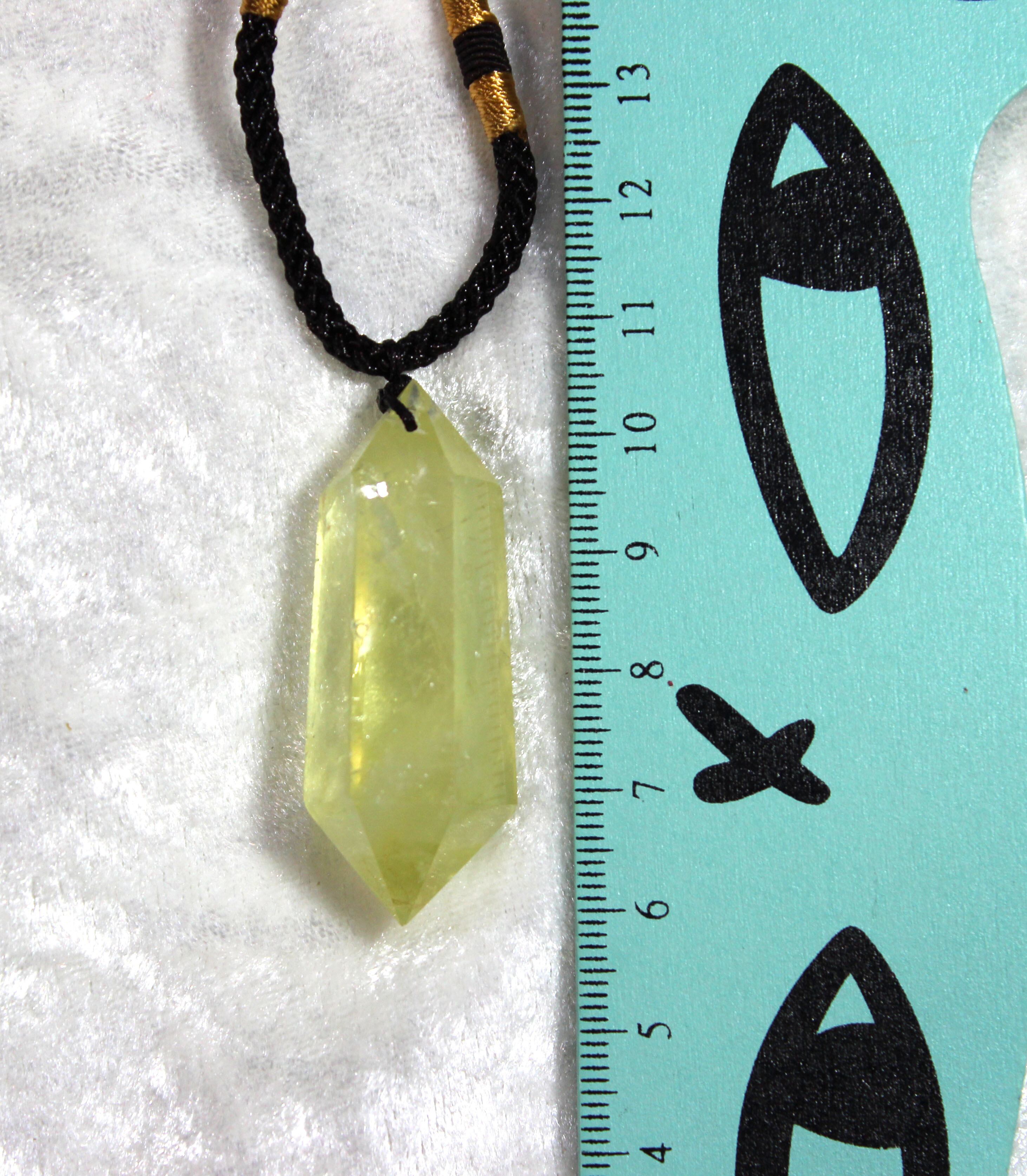 六角柱の形の黄水晶のネックレスです。紐部分は、アジャスター機能があって、48cm~61cmの長さで可変です。