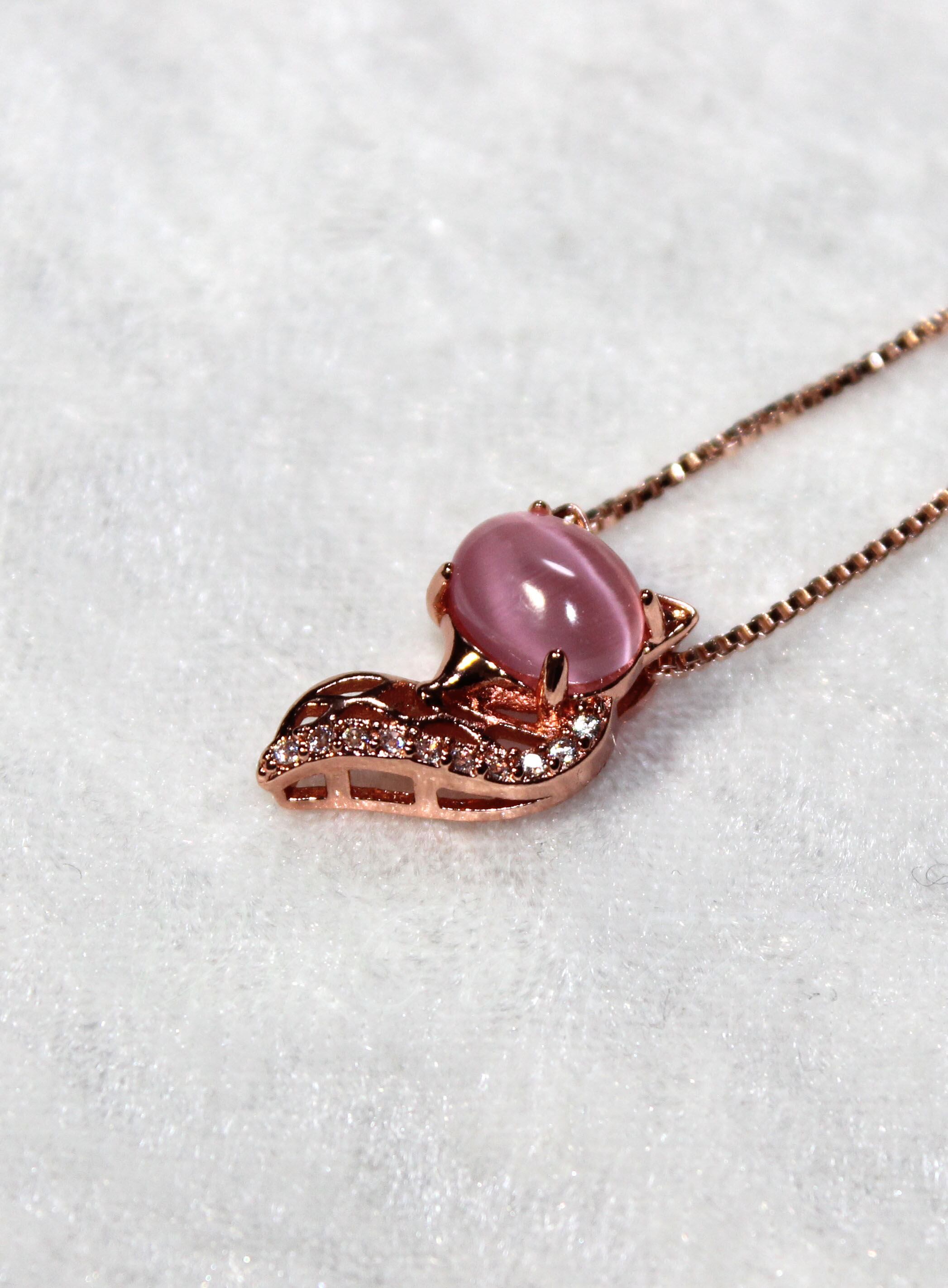 子狐をモチーフに象った、ピンクゴールドのネックレスです。チェーンはベネチアンタイプで45cmです。