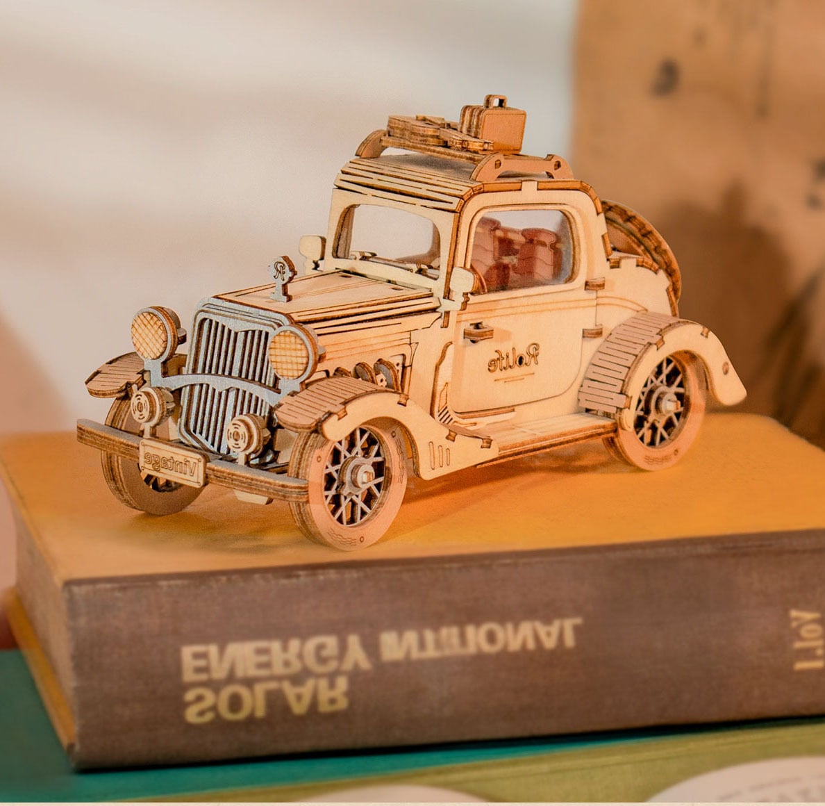 1940年代頃の外国映画に出てきそうなヴィンテージカーです。ギターを屋根に乗せて、気楽な旅をしていそうな・・・。