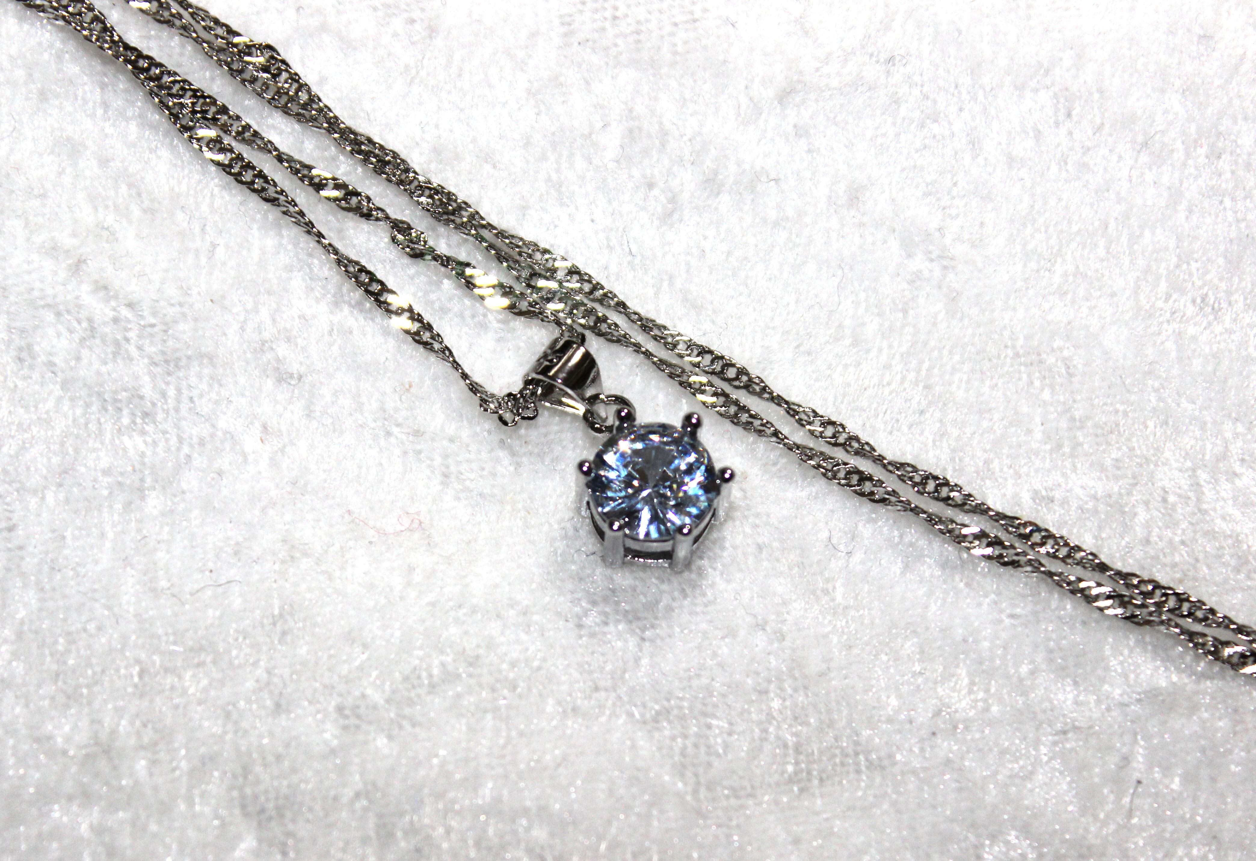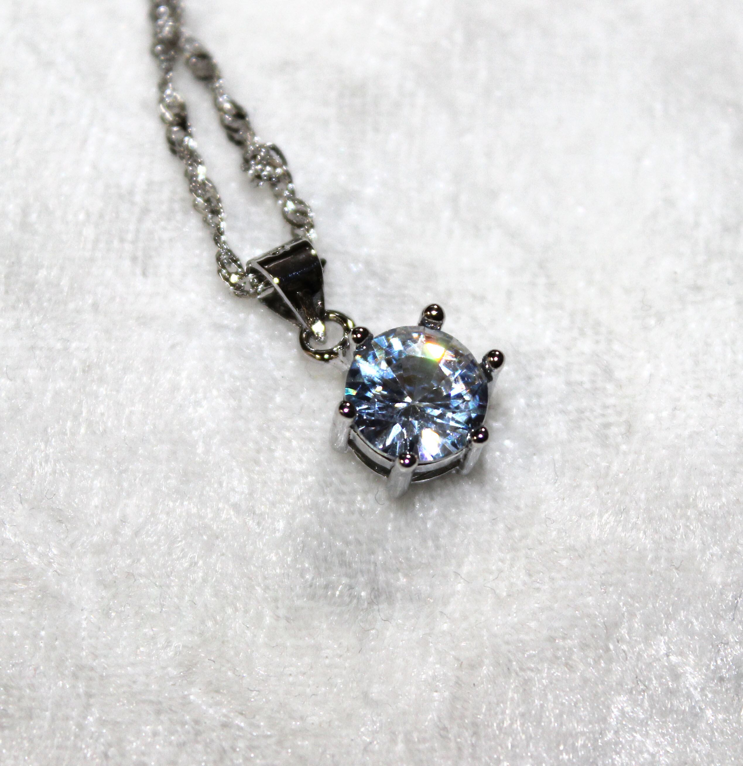 8mmのキュービックジルコニアを使用した高品質なネックレスです。シンプルなデザインでありながらも、輝きと存在感があり、個性を引き立てるデザインです。光が当たると少しブルーがかって見えますよ。