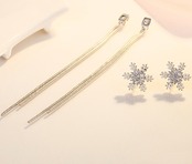 雪の結晶の形を象ったラインピアスです。チェーンは、短い方が7.5cm、長い方が9cmです。
