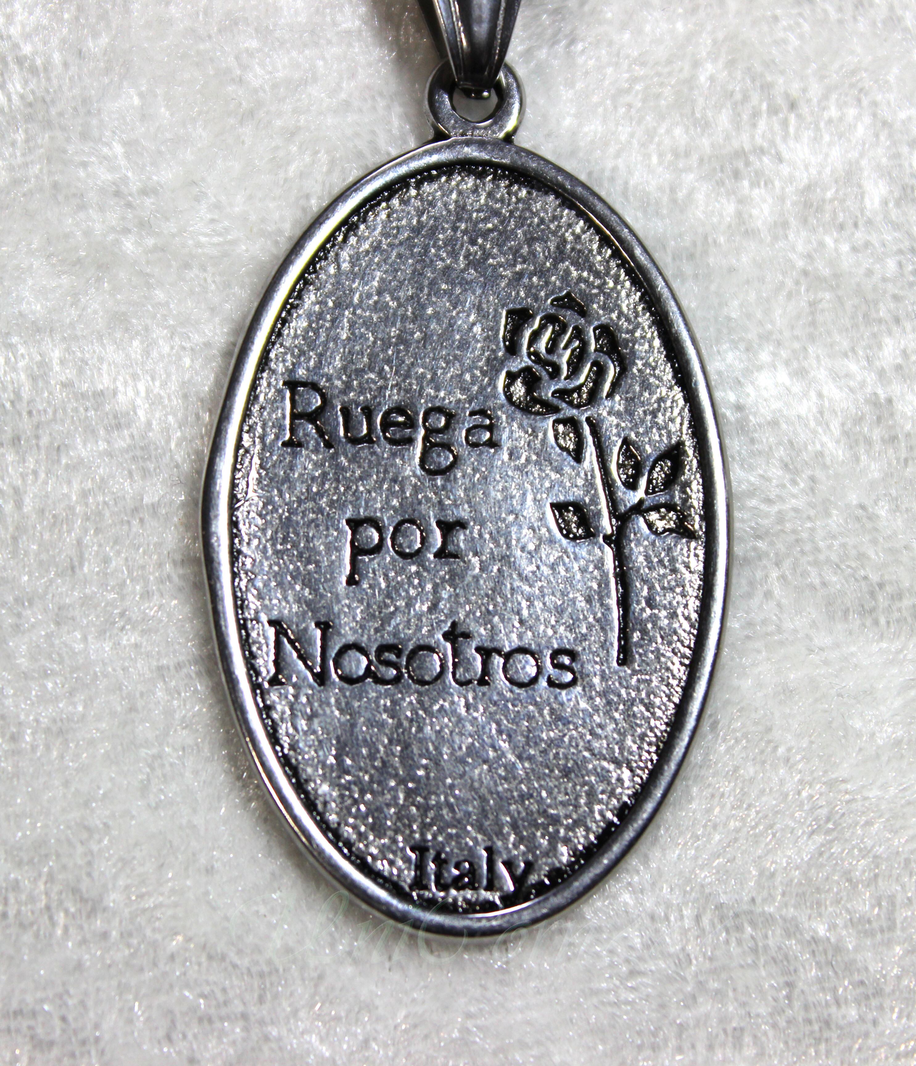 裏面に書かれている言葉「Ruega por nosotros」は、スペイン語で、「お祈りください/私達をお守りください」というような意味です(↓)