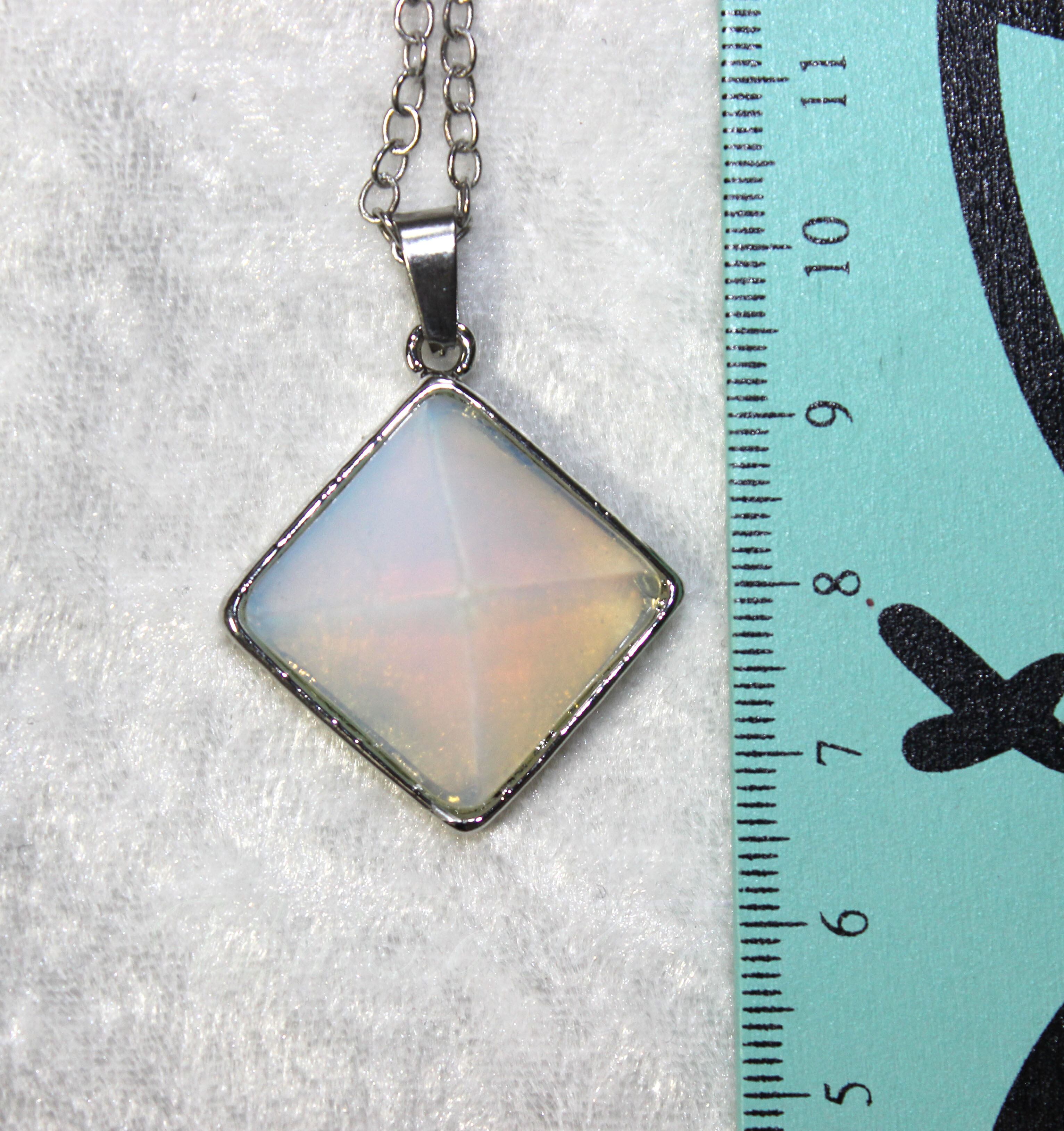 ピラミッドの形をしたネックレスです。白色ですが、中でほんのりピンクに光ってます。チェーンは50cmです。