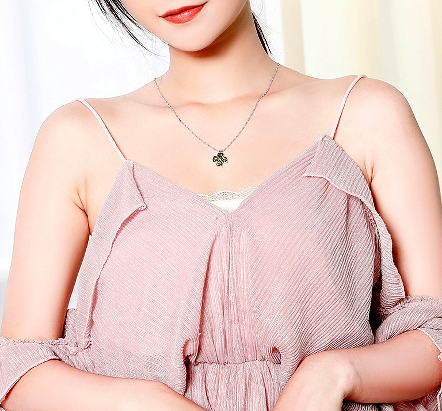 四つ葉のクローバーの形を模したネックレスです。チェーンの長さは40cm+アジャスター5cm=45cmです。