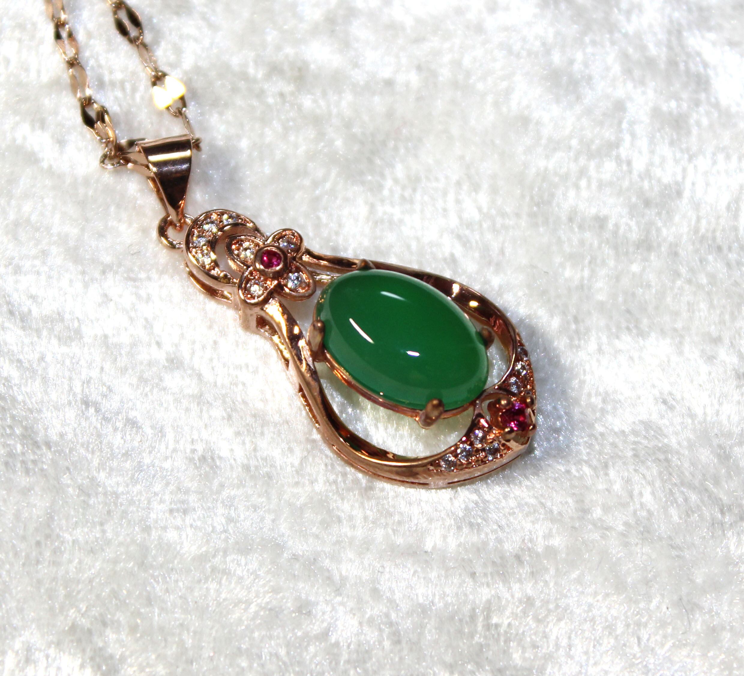 翡翠を使用した、ピンクゴールドのネックレスです。チェーンの長さは、37cm+アジャスター5cm=42cmです。