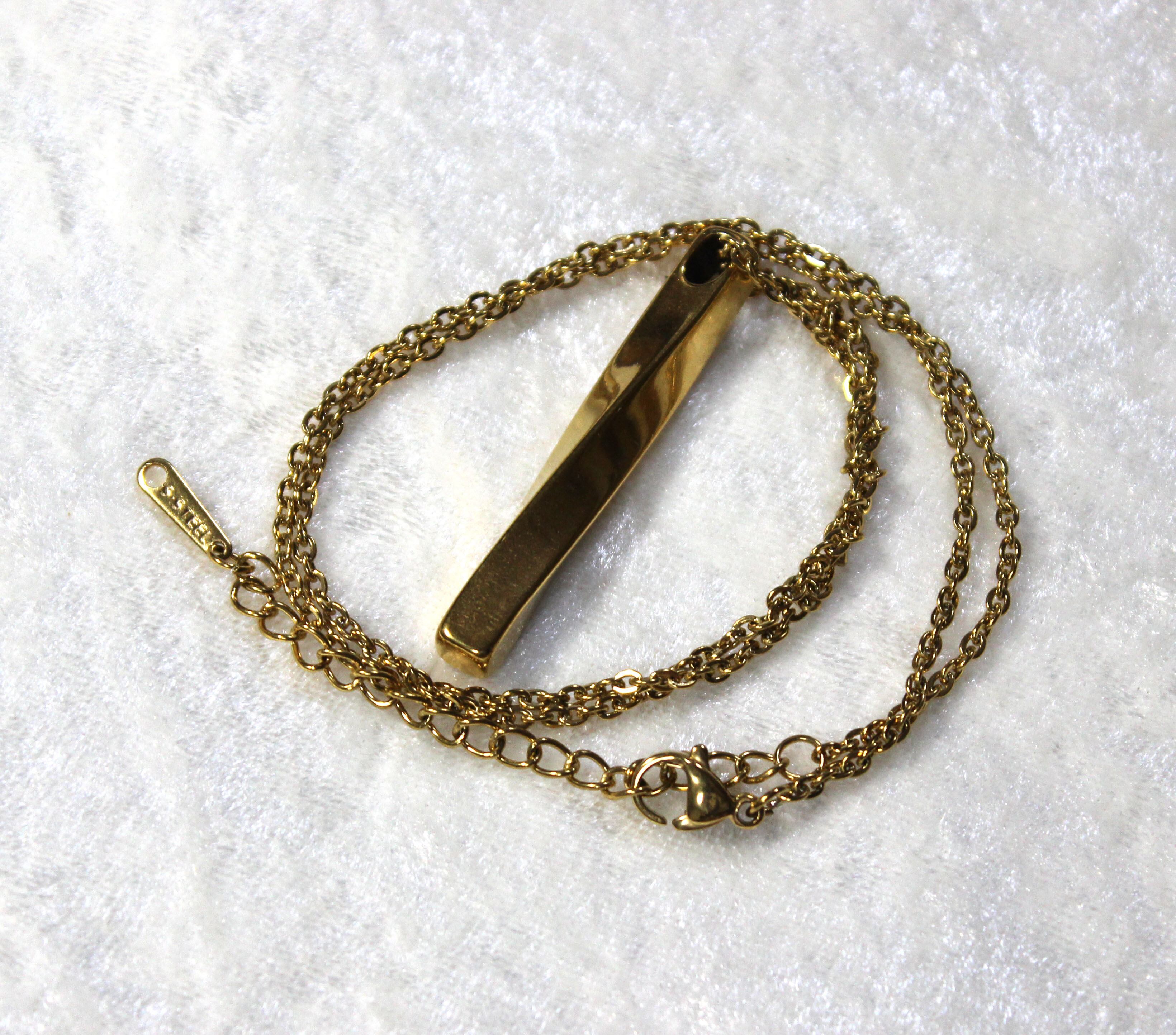 スティックタイプのネックレス、おしゃれに捻れてイイ感じです。チェーンは40cm+アジャスター5cm=45cmです。