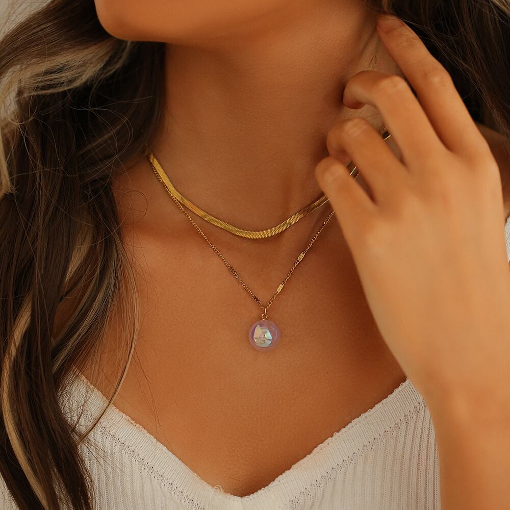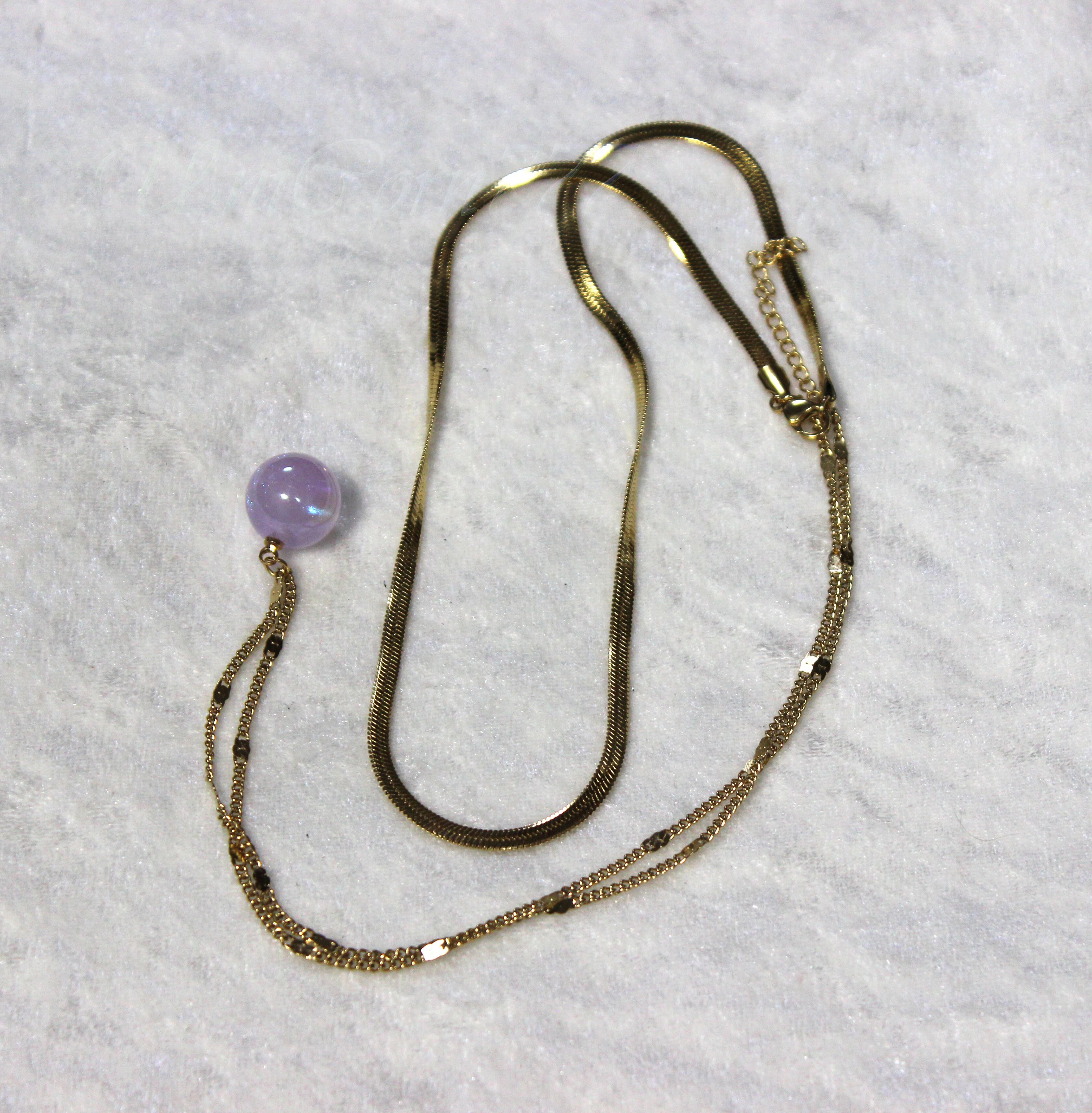 ダブルチェーンと虹色ボールのネックレス サージカルST [UNIA22000847]