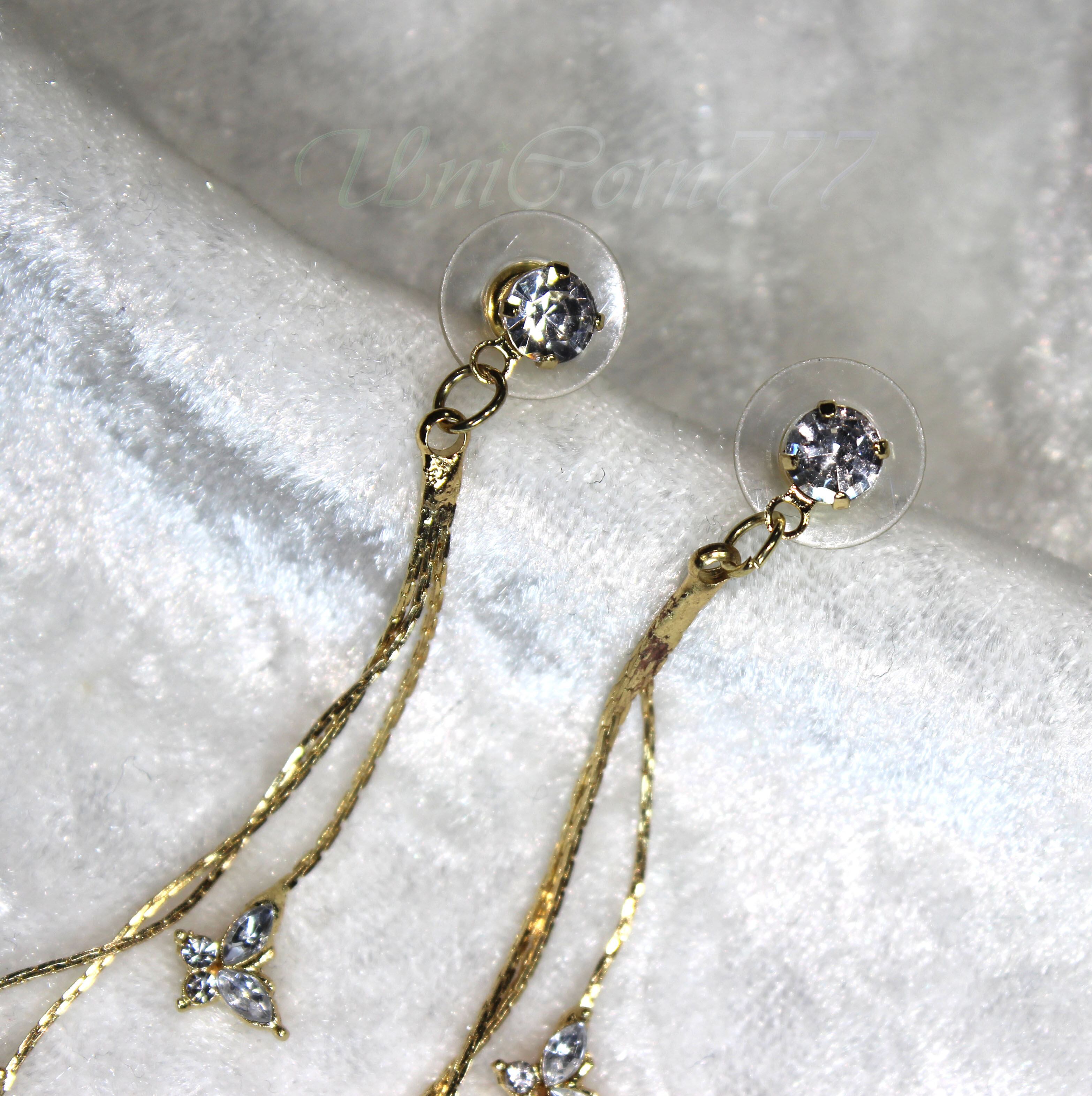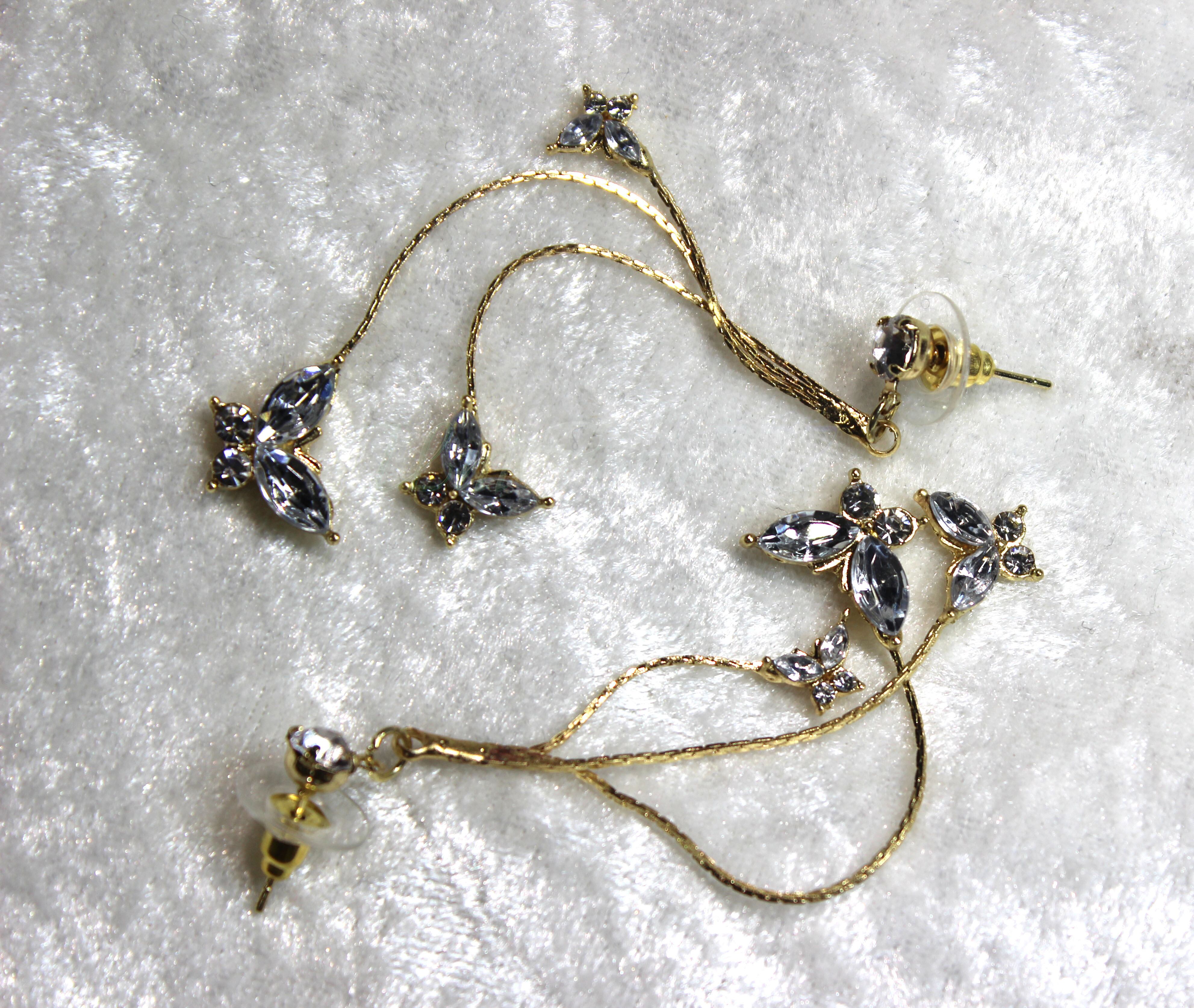 繊細で美しい蝶のラインピアス。華やかなデザインが耳元を彩ります。耳の周りで蝶が踊っているように見えますよ。耳元に舞い降りる蝶が幸せな気持ちを運んできてくれるような、そんな魅力を持ったピアスです。