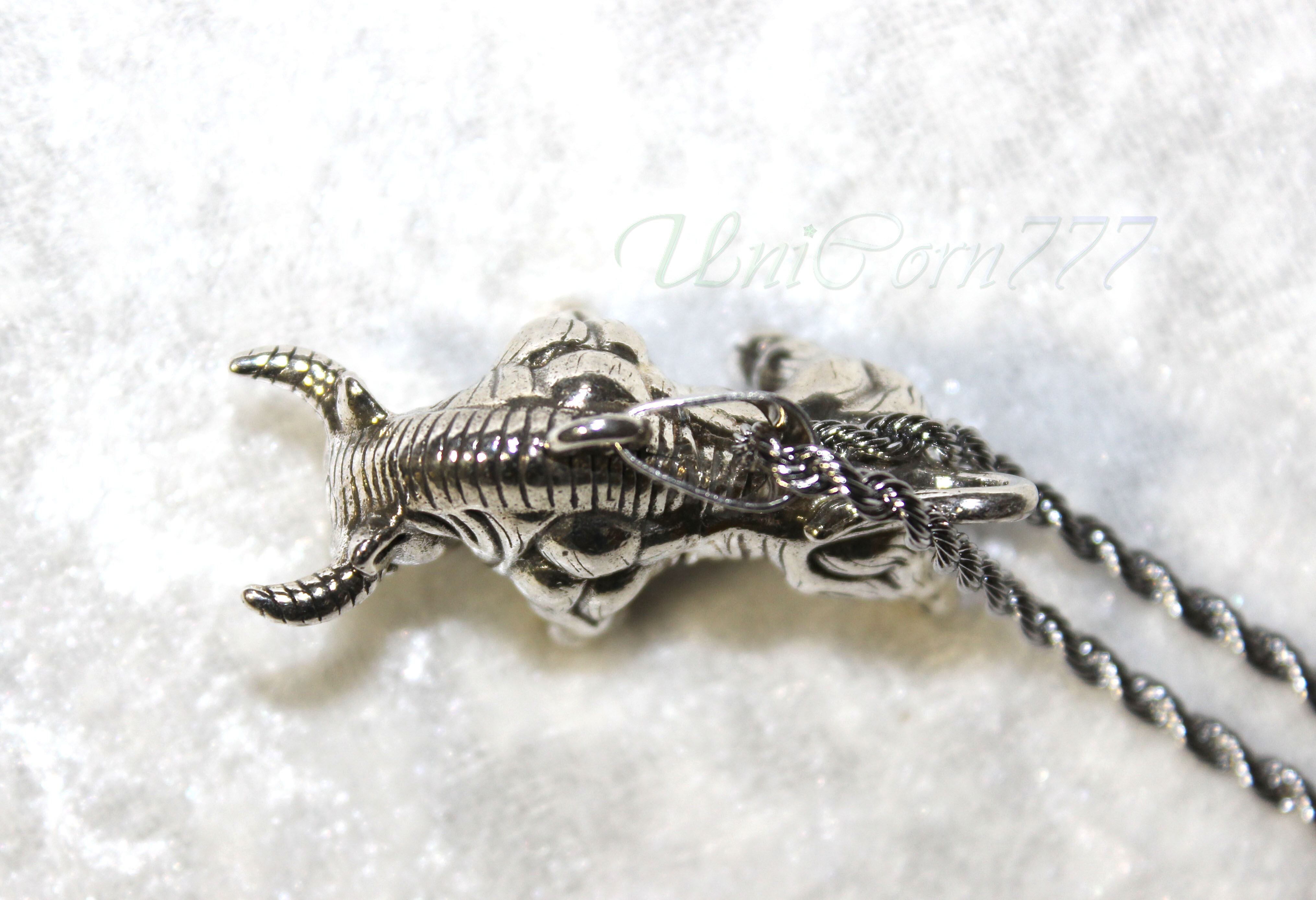 怒り狂っている牛のペンダントです。チェーンは麻縄タイプで60cmです。