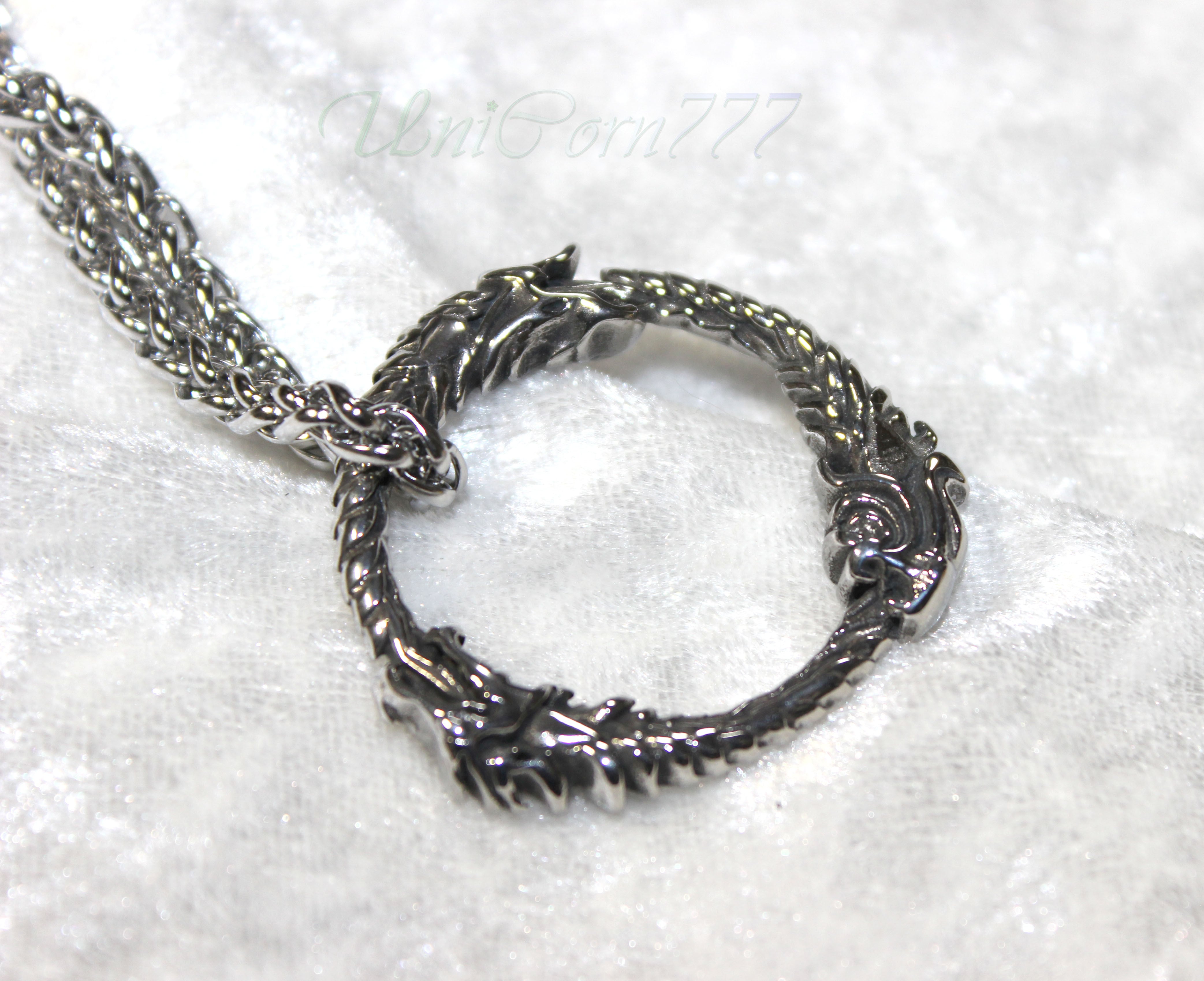 サージカルSTのウロボロスをモチーフとしたペンダント・ネックレスです。チェーンの長さは60cmです。