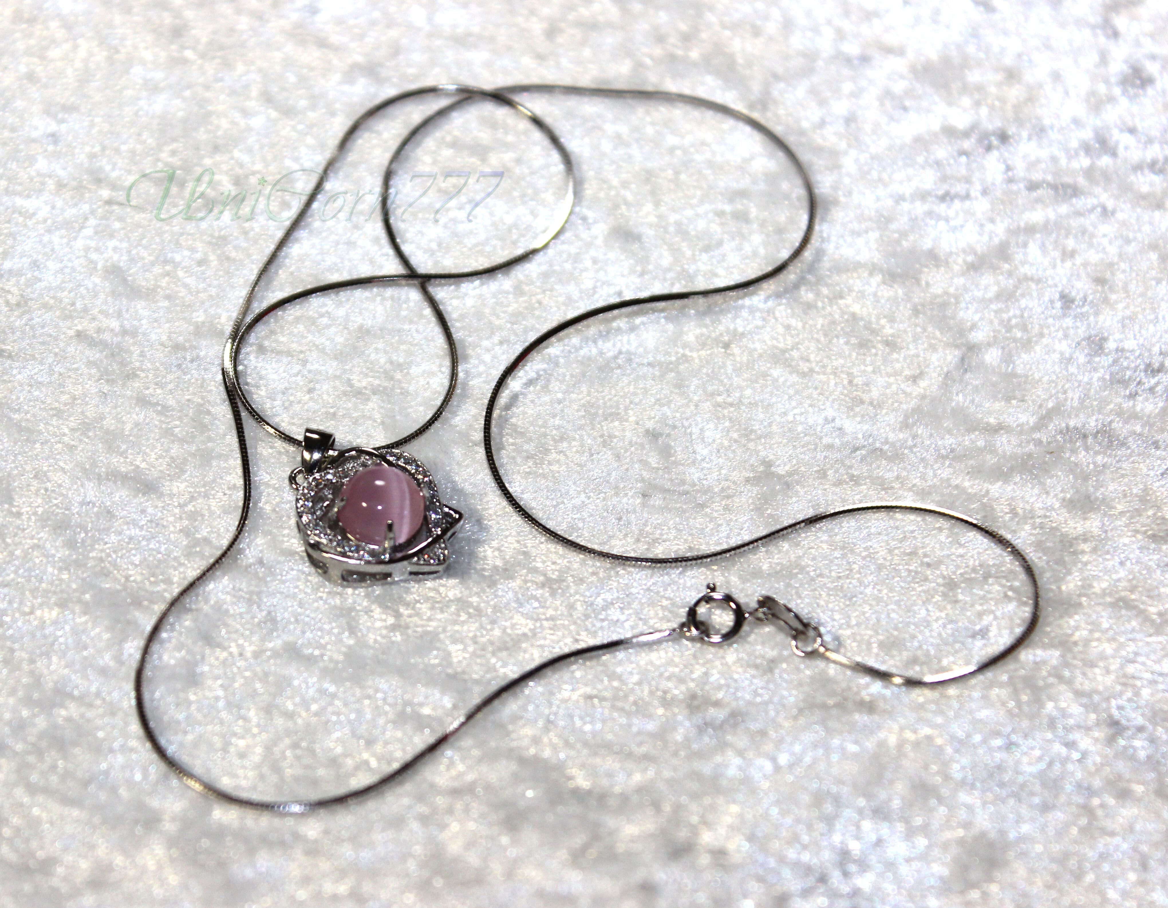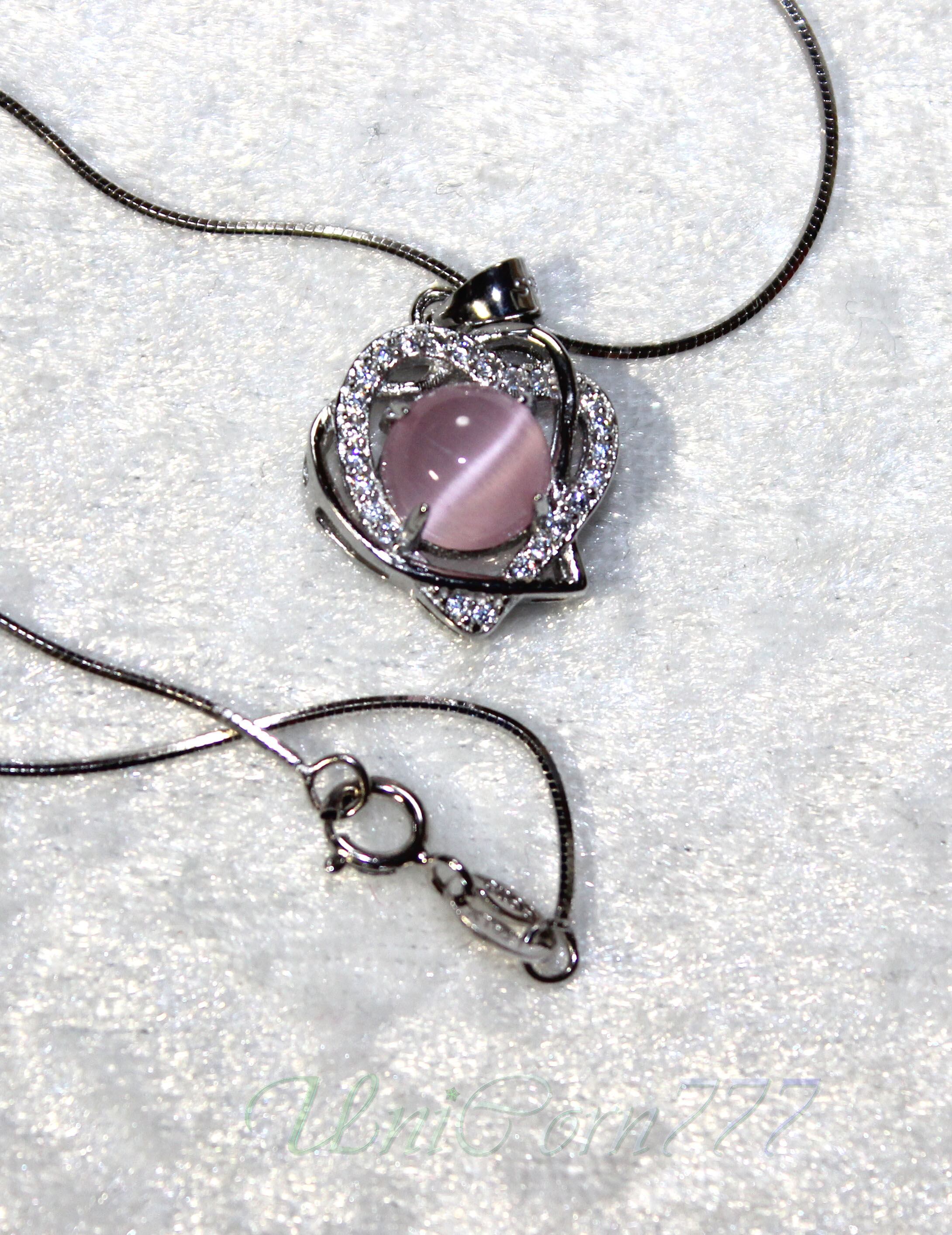 ローズクォーツを囲むようにハートがクロスしているデザインの、シルバー925銀製品のネックレスです。チェーンはスネイクタイプで45cmです。