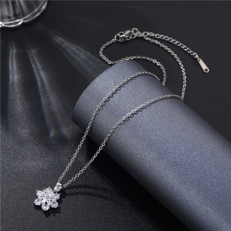 雪の結晶の形をモチーフにしたネックレスです。チェーンは長さは40cm+5cmでサージカルステンレス製です。